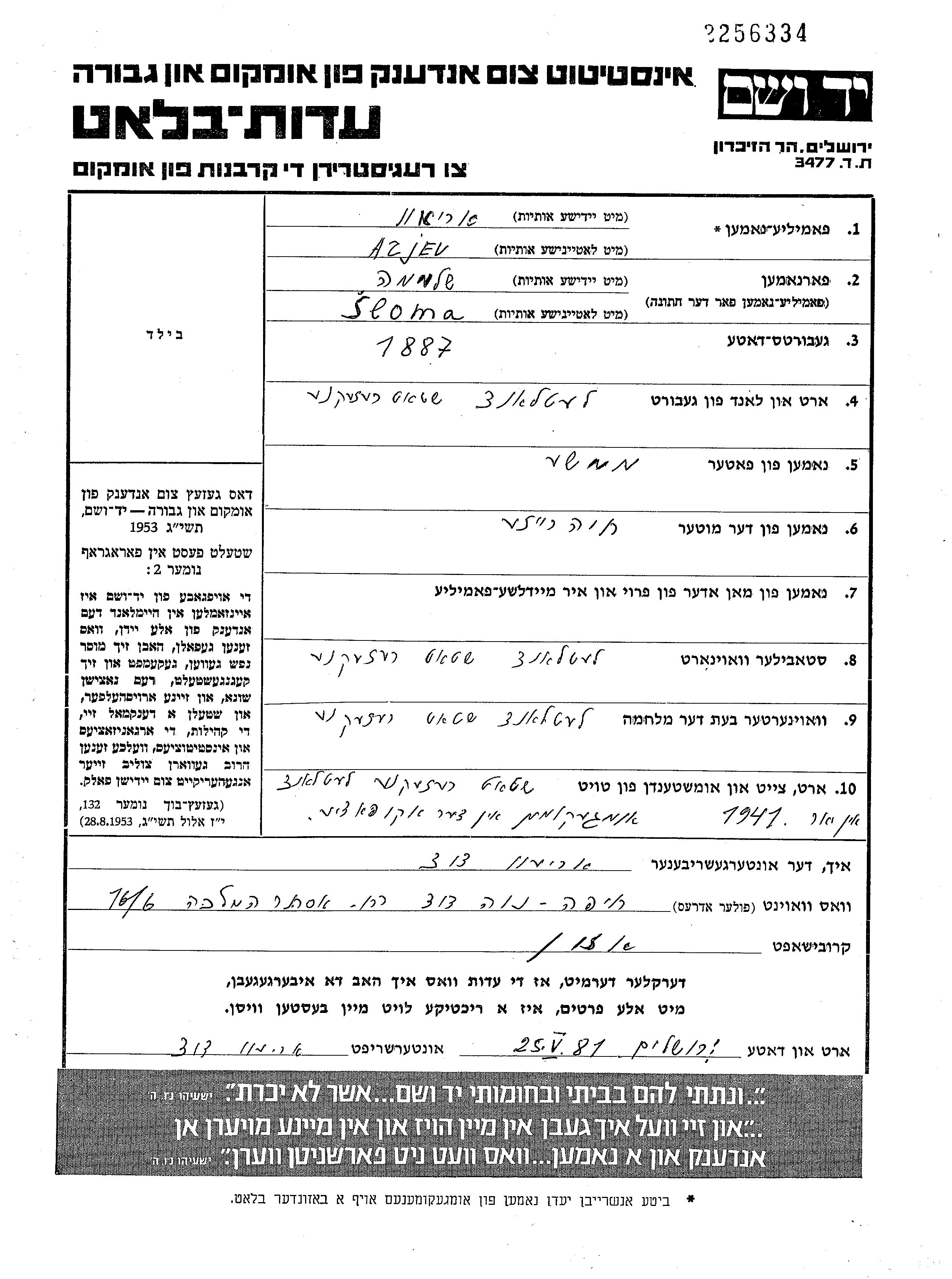 Yad Vashem - Gedenkblätter Sammlung