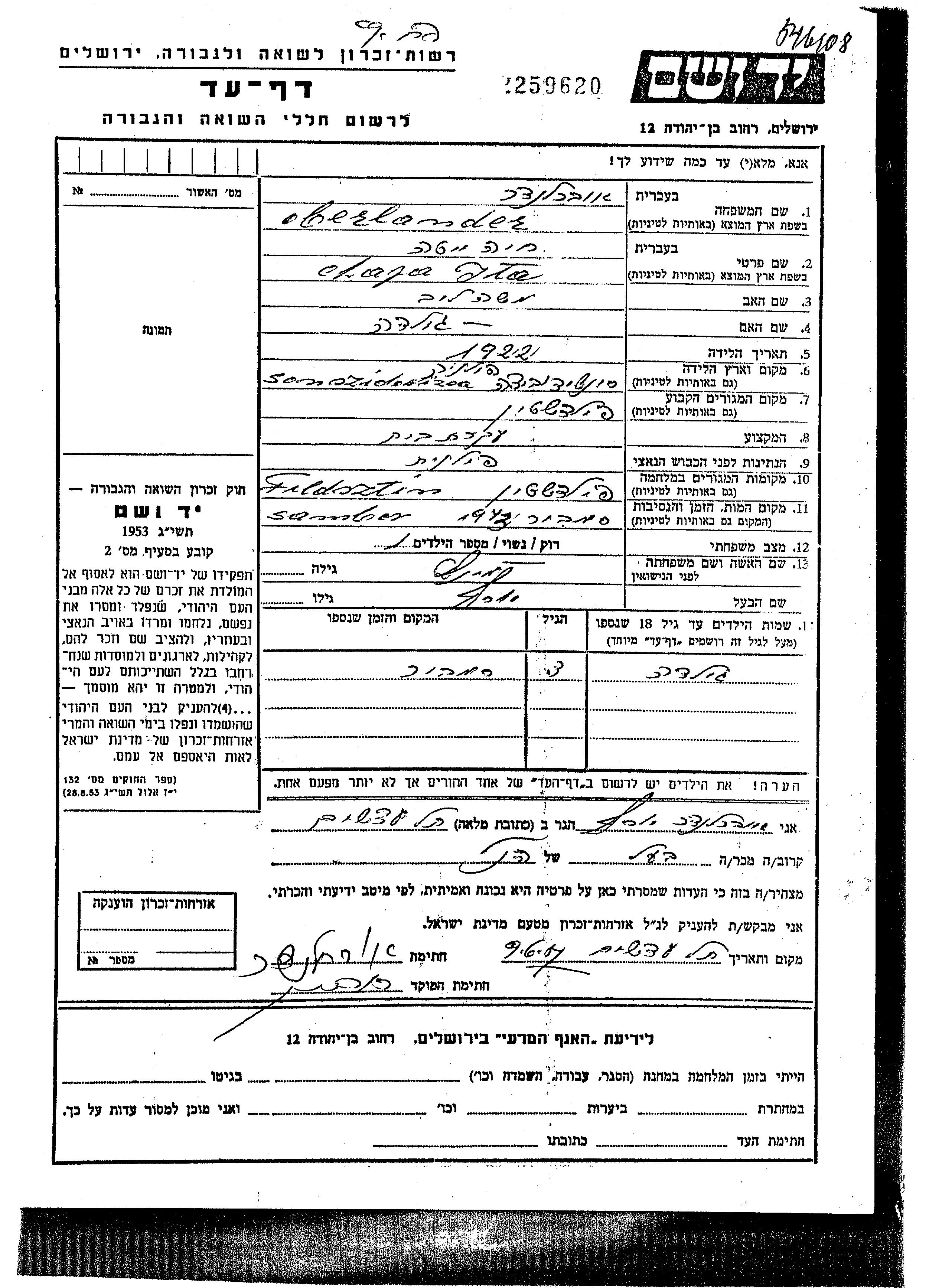 Golda Oberlander wurde in Polen geboren. Sie war die Tochter von Yosef und Chaija Ita. Sie war Kind. Vor dem Zweiten Weltkrieg lebte sie in Felsztyn, Polen. Während des Krieges war sie in Felsztyn, Polen.