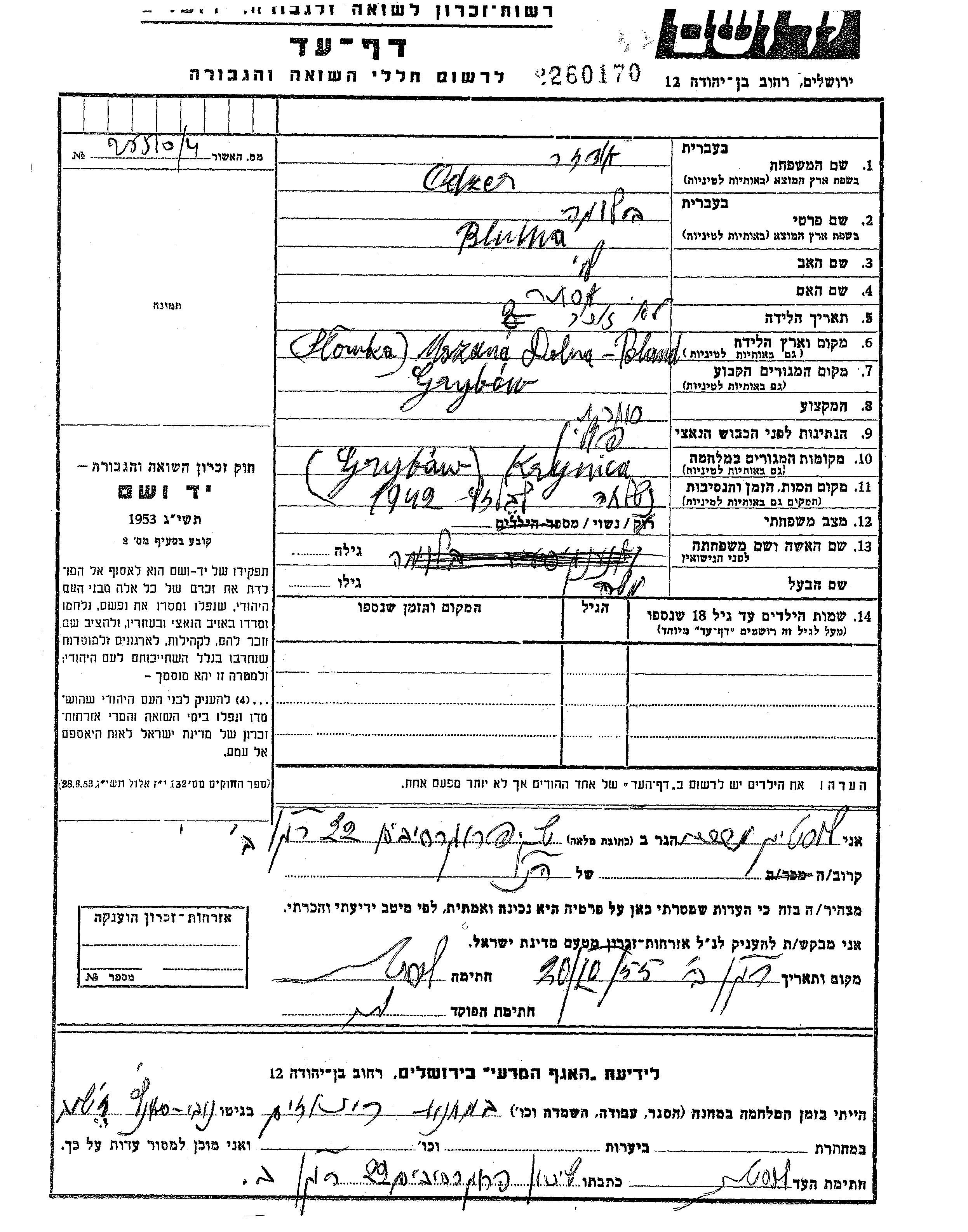 Bluma wurde in der Schoah ermordet. Todesort: Belzec, Polen.