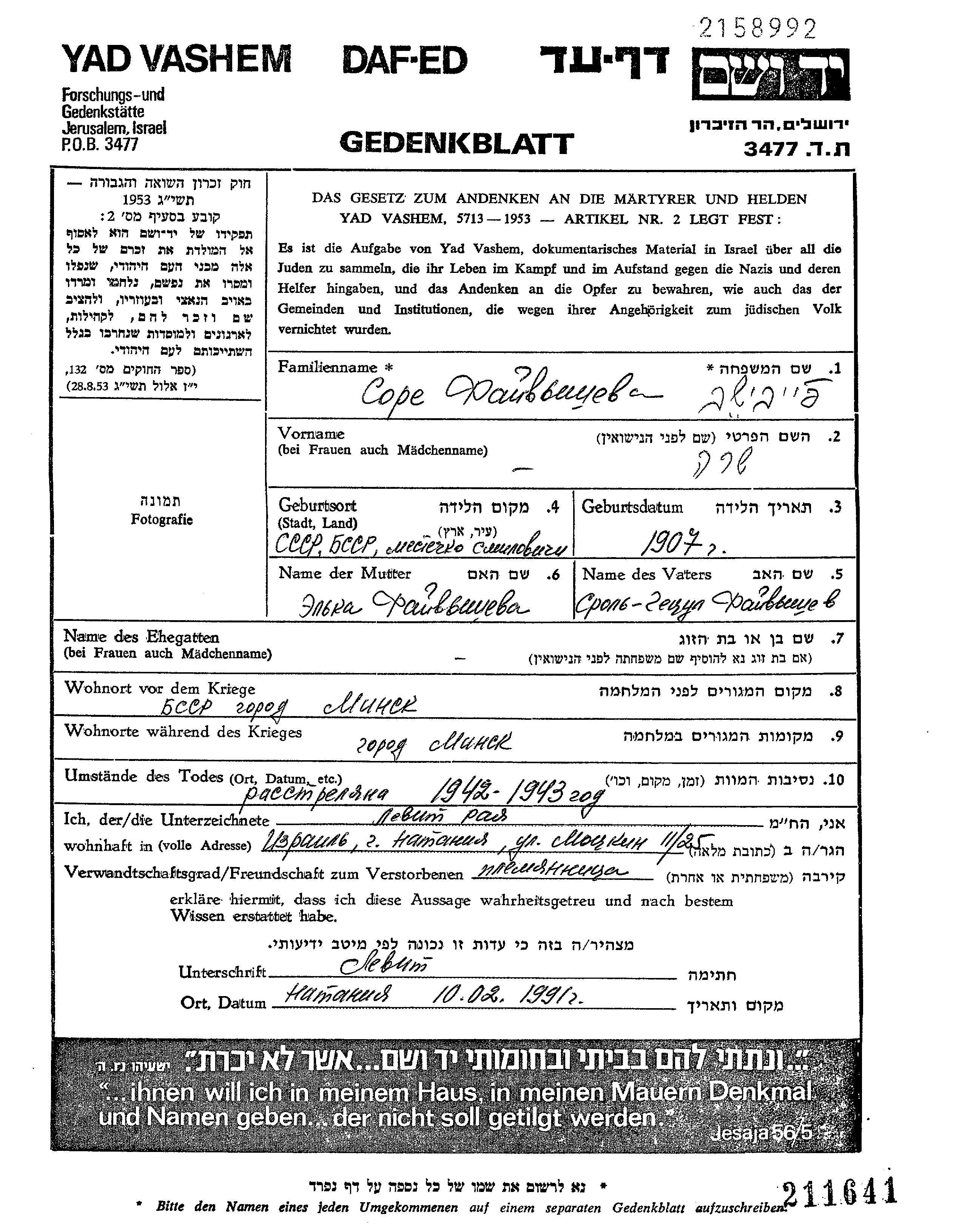 Sore wurde in der Schoah ermordet. Todesort: unbekannt im Jahr 1942.