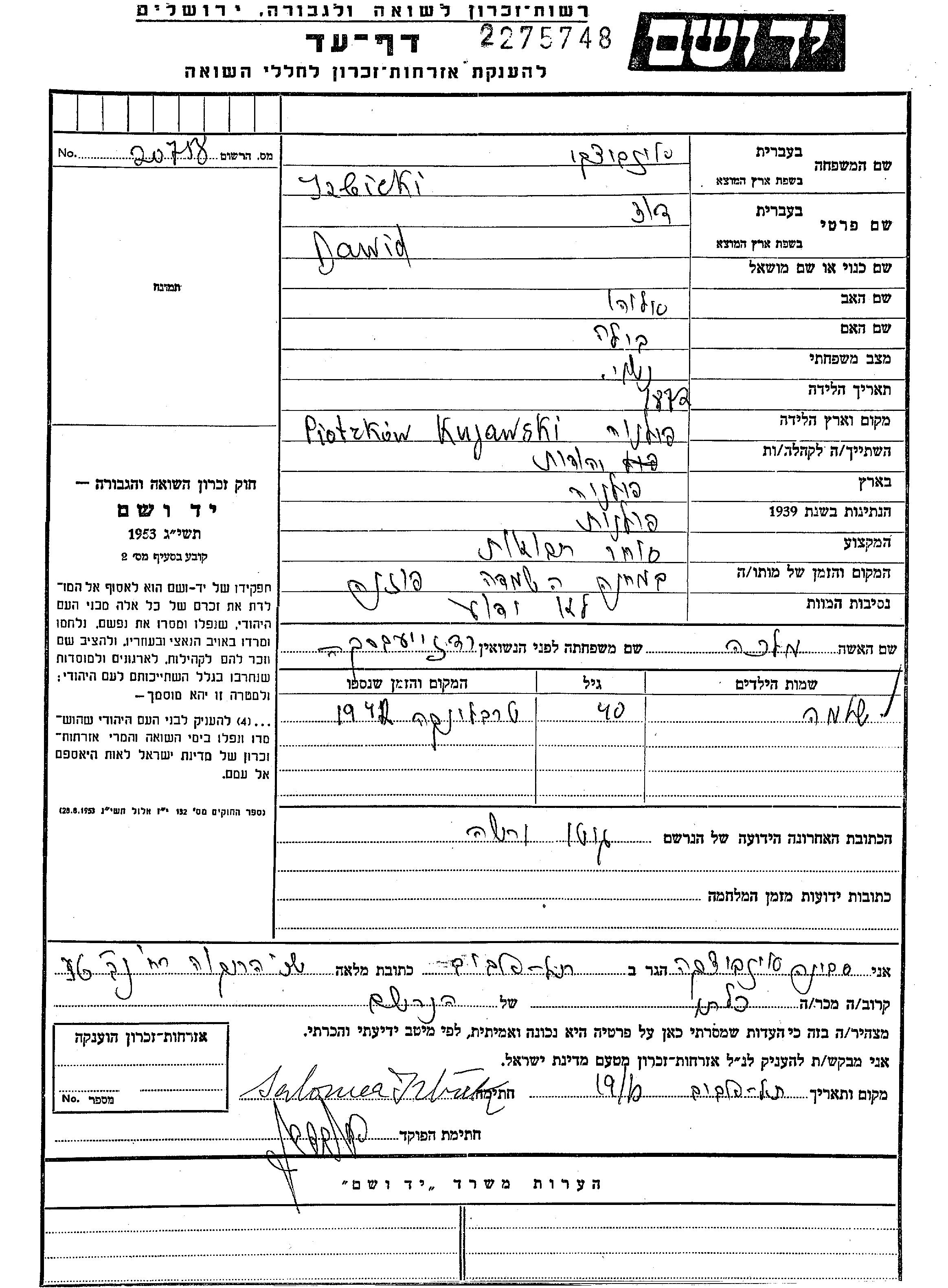Dawid wurde in der Schoah ermordet. Todesort: Poznan, Polen.