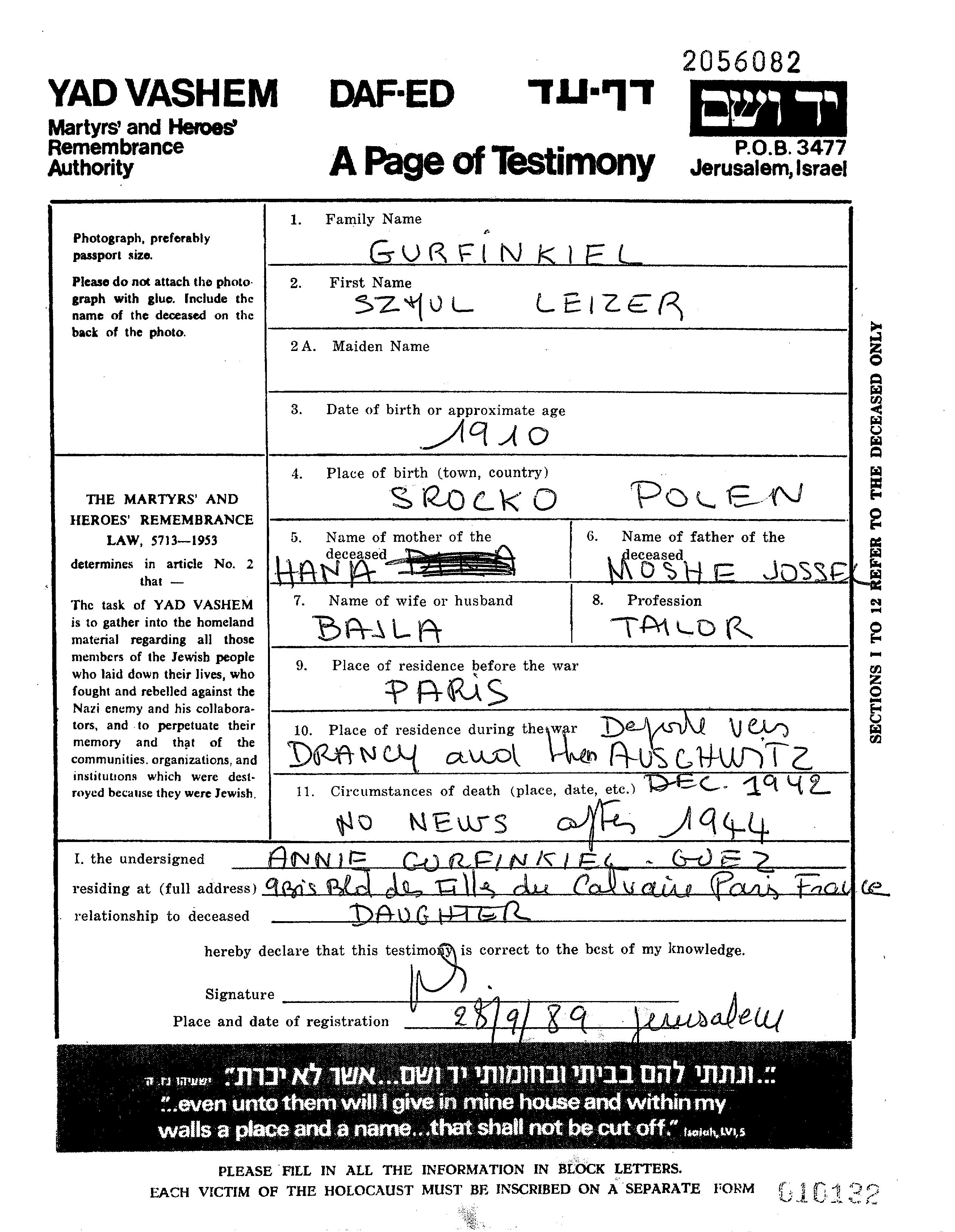 Suche nach einem Todesjahr im Zeitraum der Holocaust: 1933 bis 1945. Bitte wählen Sie 'Exakt' im Auswahlmenü, um nur nach einem einzelnen Jahr zu suchen, alternativ können Sie die flexibleren Optionen '+/- 2 Jahre' oder '+/- 5 Jahre' wählen.