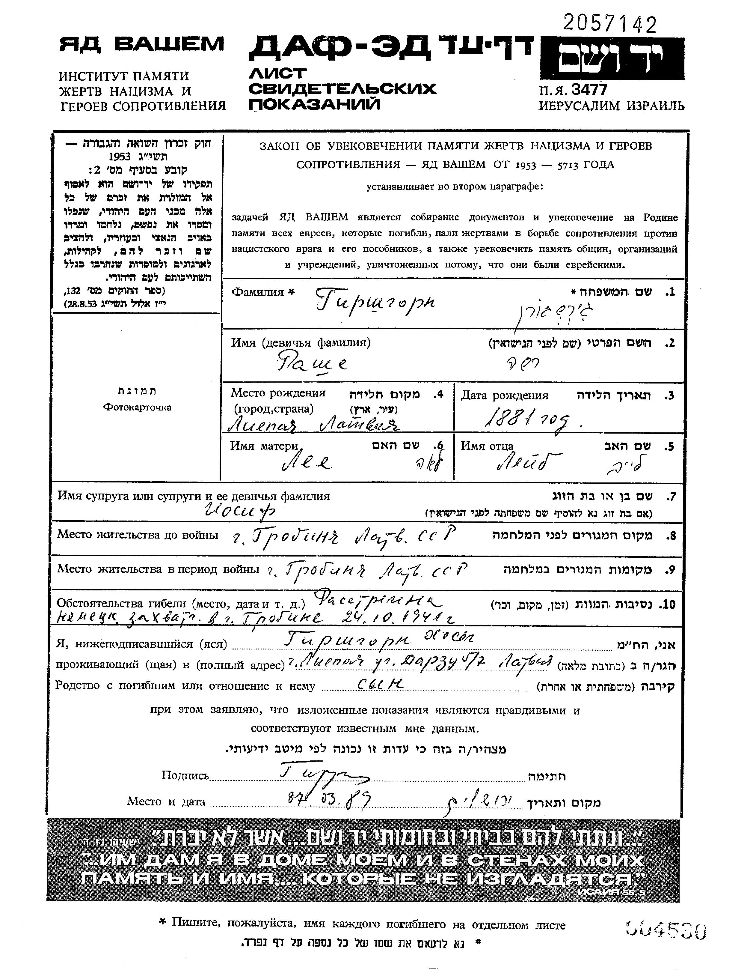 Rashe wurde in der Schoah ermordet. Todesort: Grobin, Lettland im Jahr 24/10/1941.