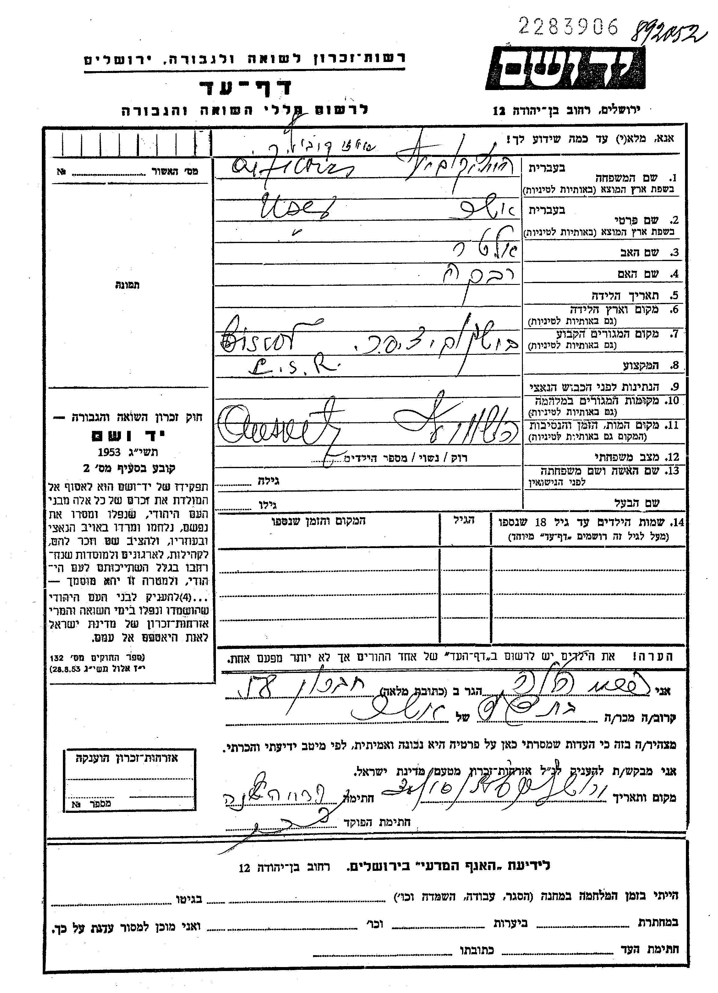 Suche nach einem Todesjahr im Zeitraum der Holocaust: 1933 bis 1945. Bitte wählen Sie 'Exakt' im Auswahlmenü, um nur nach einem einzelnen Jahr zu suchen, alternativ können Sie die flexibleren Optionen '+/- 2 Jahre' oder '+/- 5 Jahre' wählen.