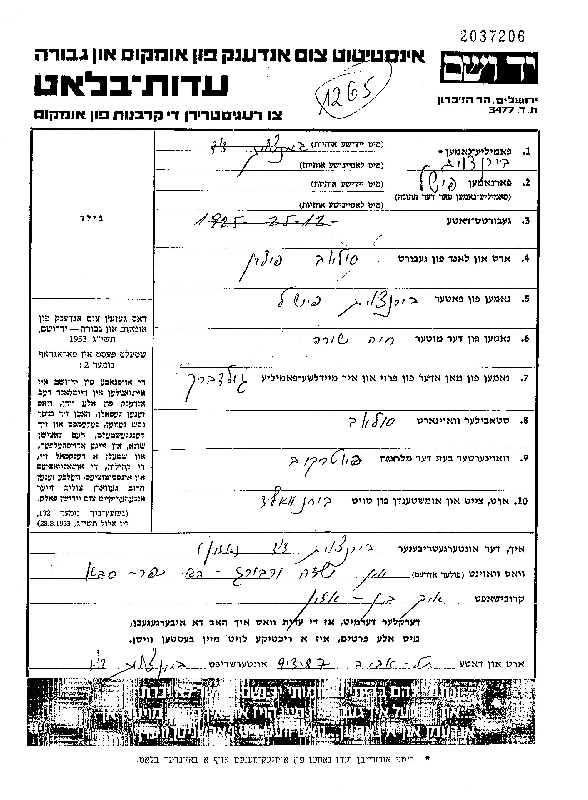 Yad Vashem - Gedenkblätter Sammlung