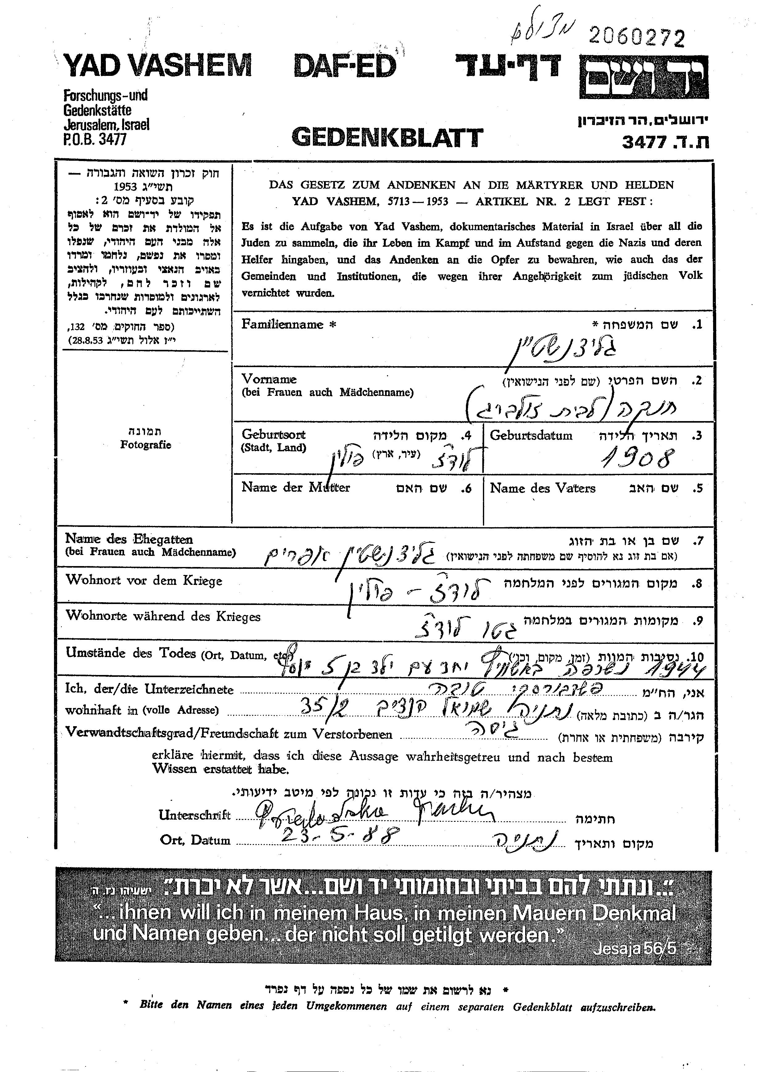 Khanka wurde in der Schoah ermordet. Todesort: Auschwitz, Polen im Jahr 1944.