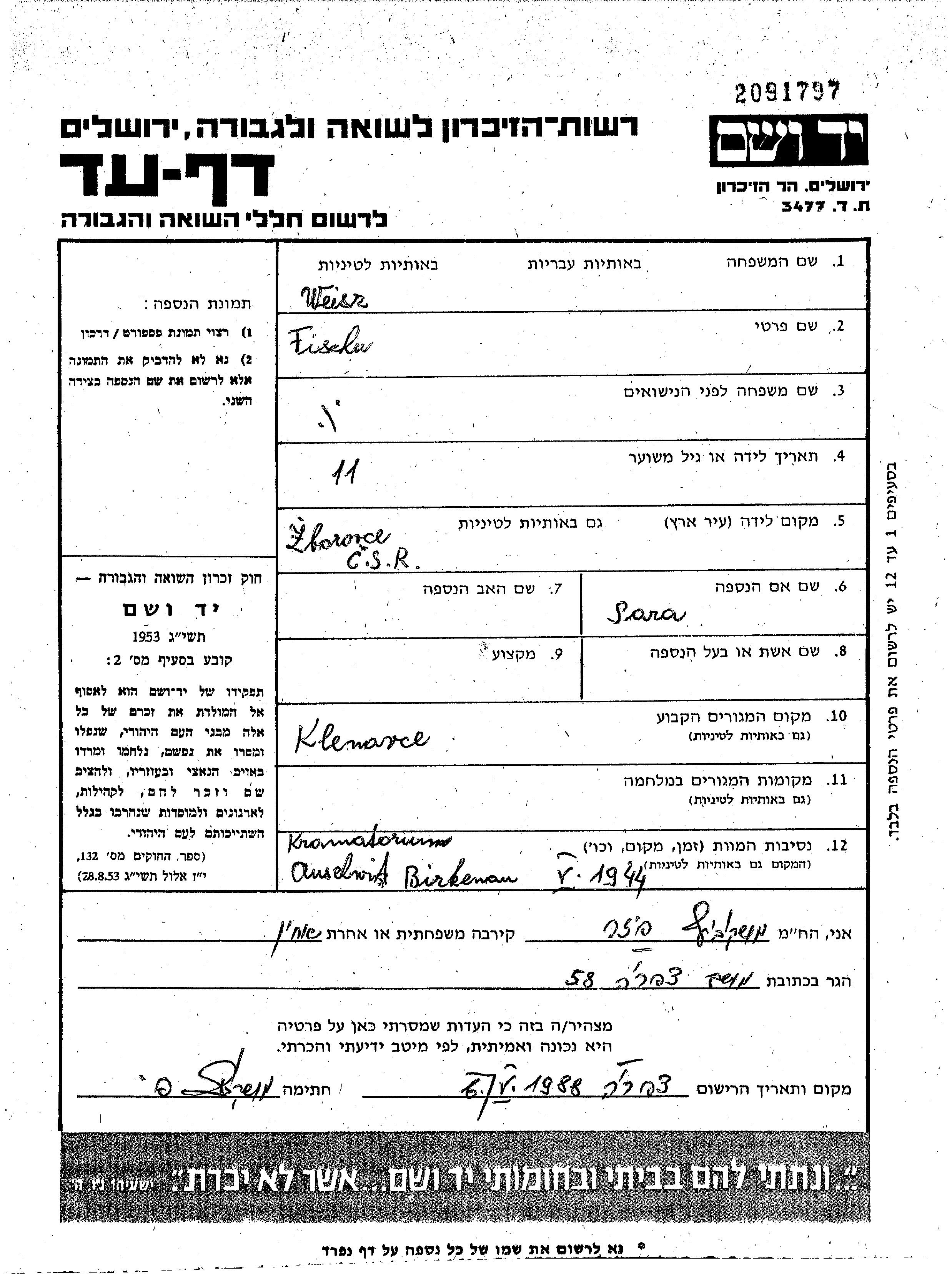 Fischu wurde in der Schoah ermordet. Todesort: Birkenau, Polen im Jahr 1944.