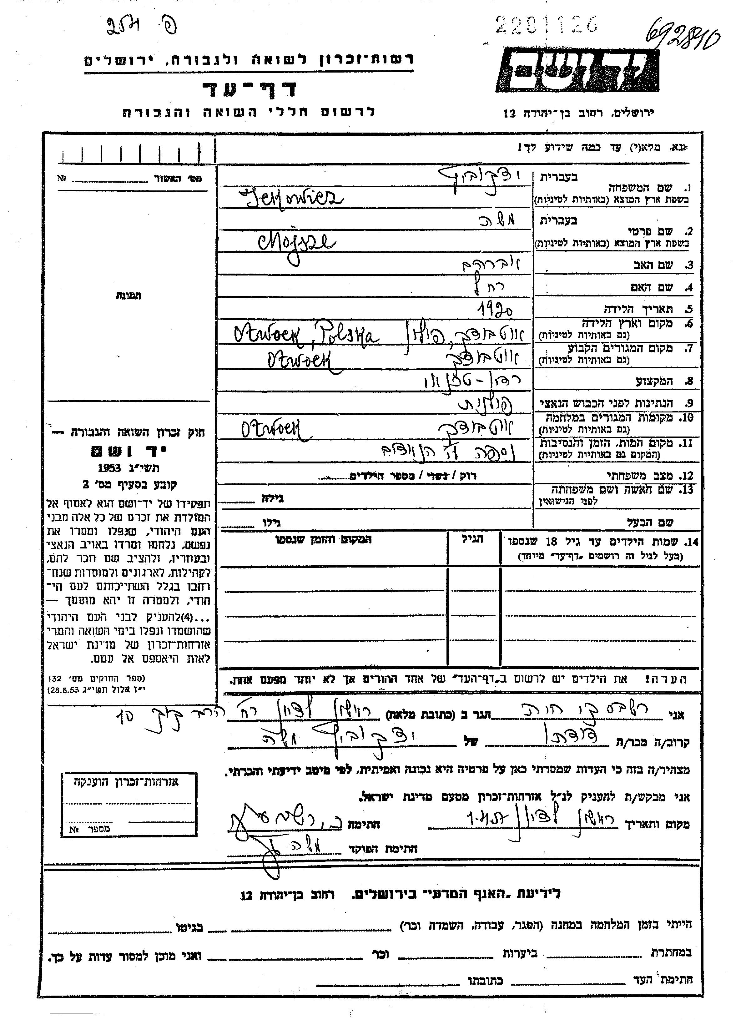 Mojsze wurde in der Schoah ermordet.