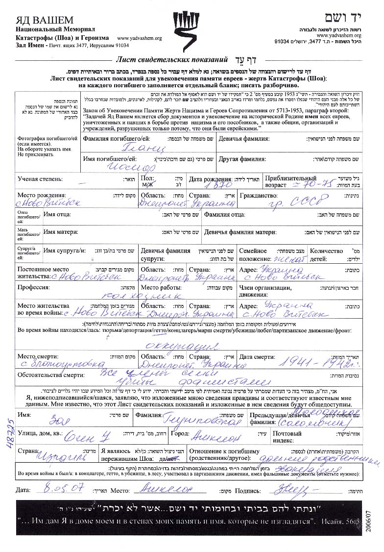 Suche nach einem Todesjahr im Zeitraum der Holocaust: 1933 bis 1945. Bitte wählen Sie 'Exakt' im Auswahlmenü, um nur nach einem einzelnen Jahr zu suchen, alternativ können Sie die flexibleren Optionen '+/- 2 Jahre' oder '+/- 5 Jahre' wählen.