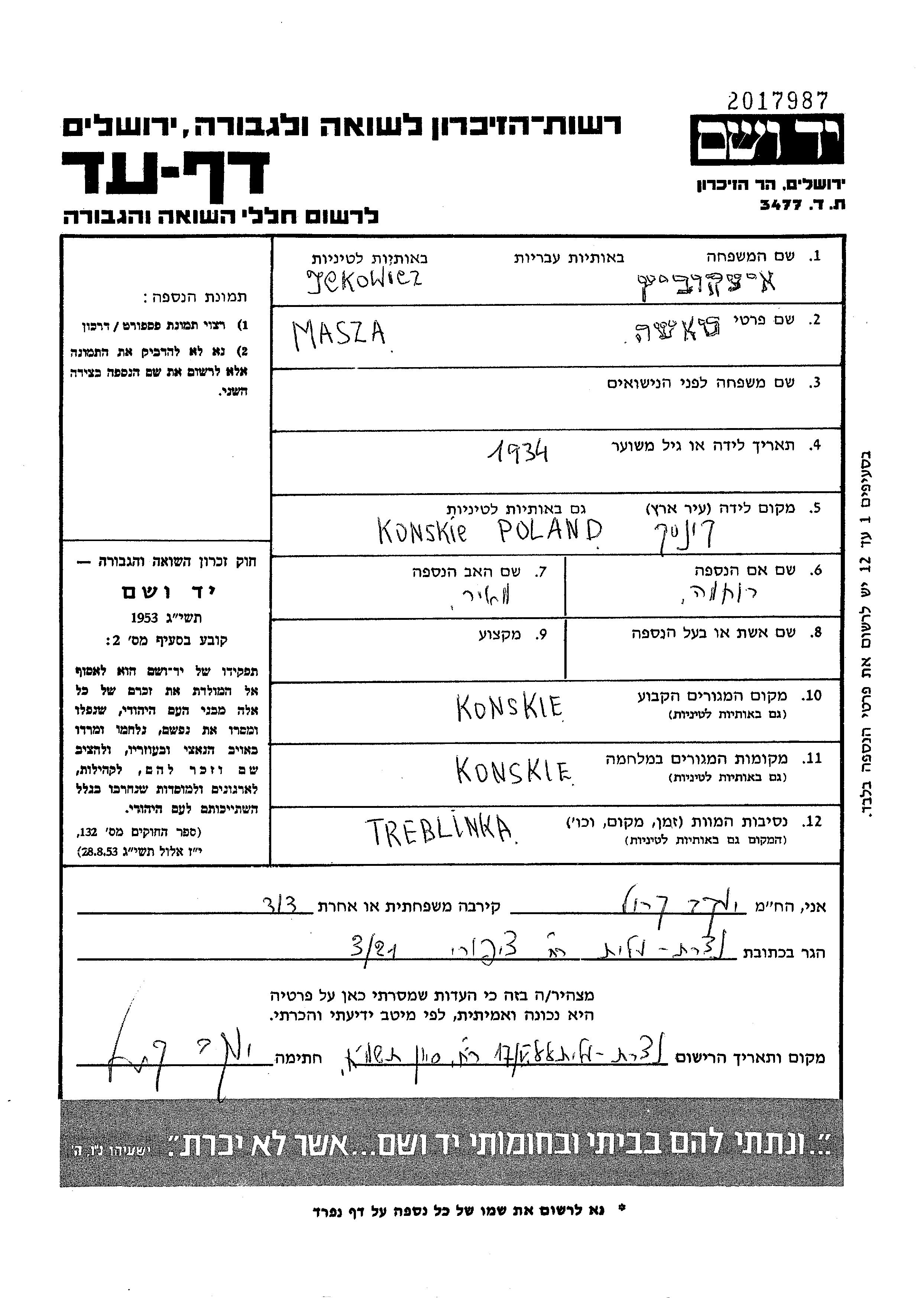 Masha wurde in der Schoah ermordet. Todesort: Treblinka, Polen.