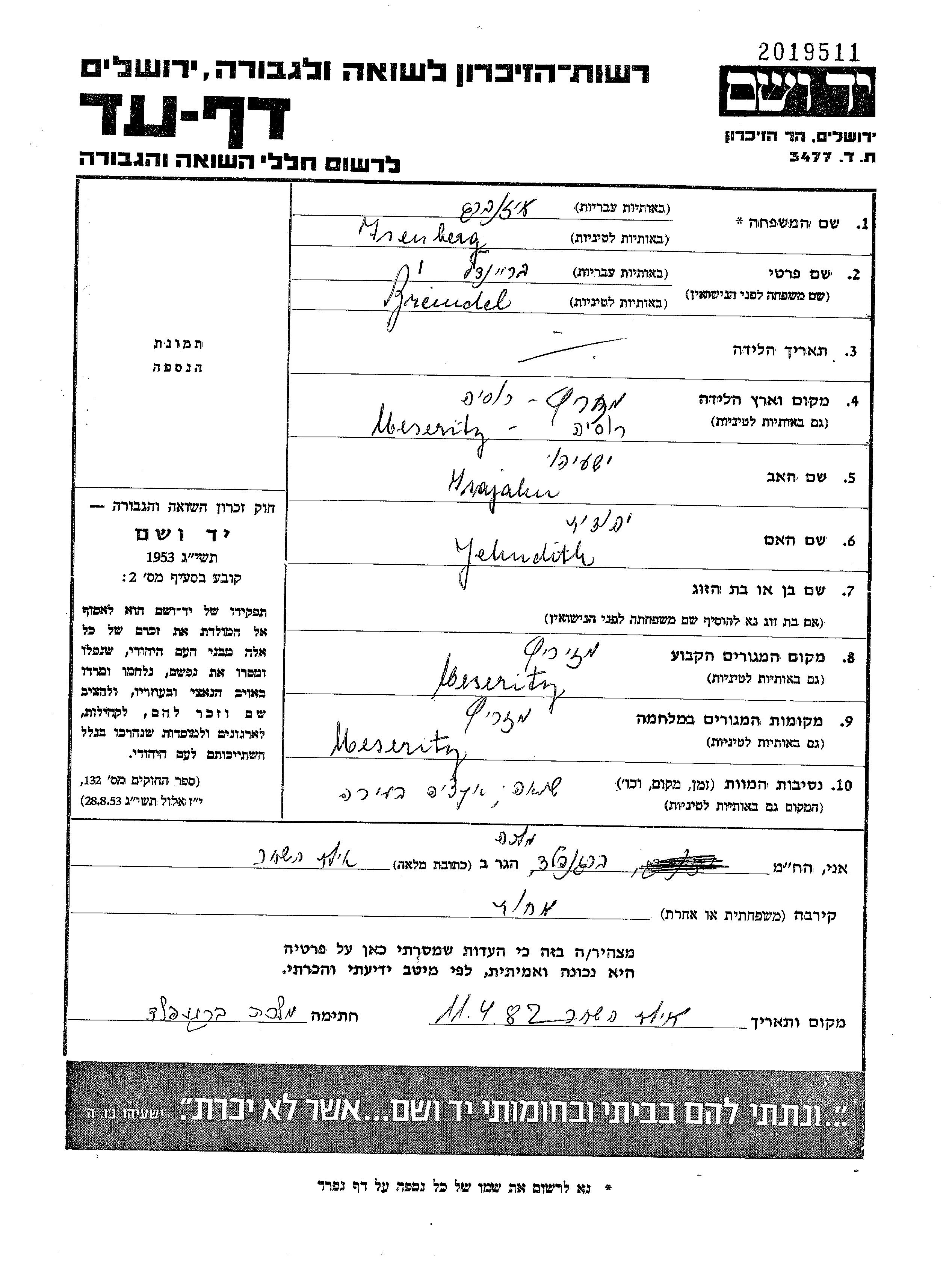 Braindel wurde in der Schoah ermordet. Todesort: Mezerich, Polen.