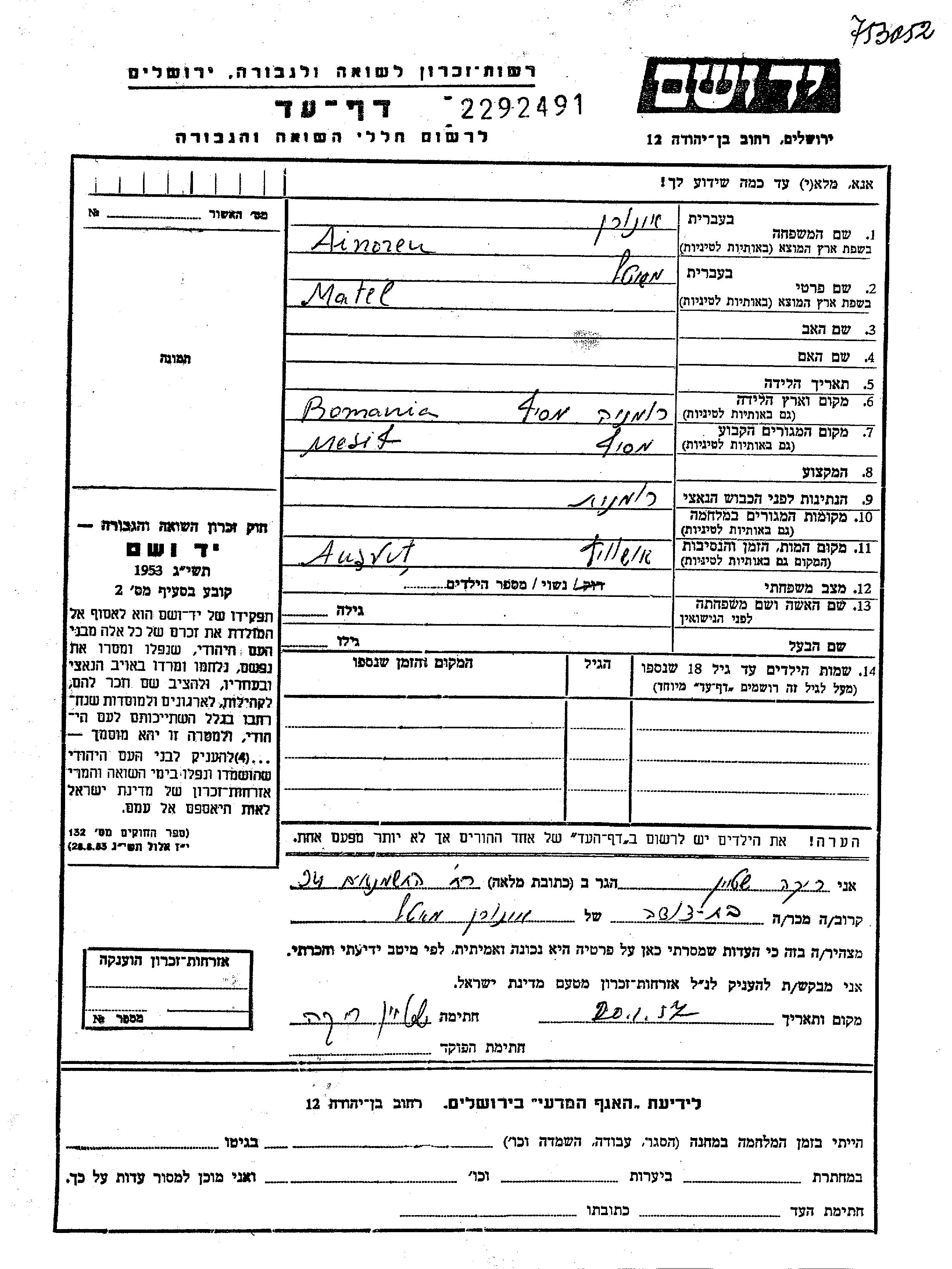 Matel Mate Matl Ainoren wurde in Masif, Rumänien geboren. Vor dem Zweiten Weltkrieg lebte sie in Masif, Rumänien.