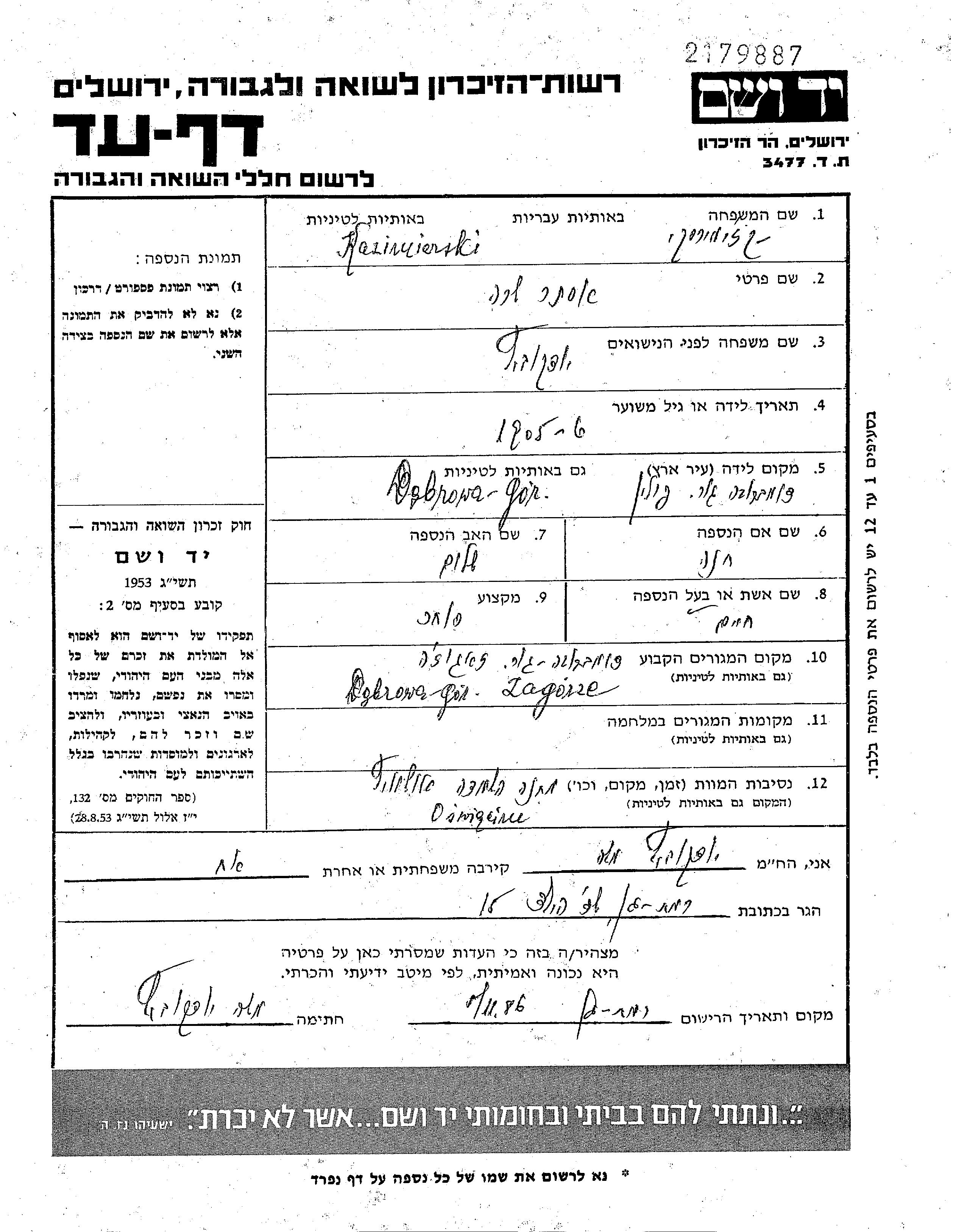 Ester Sara wurde in der Schoah ermordet. Todesort: Auschwitz, Polen.