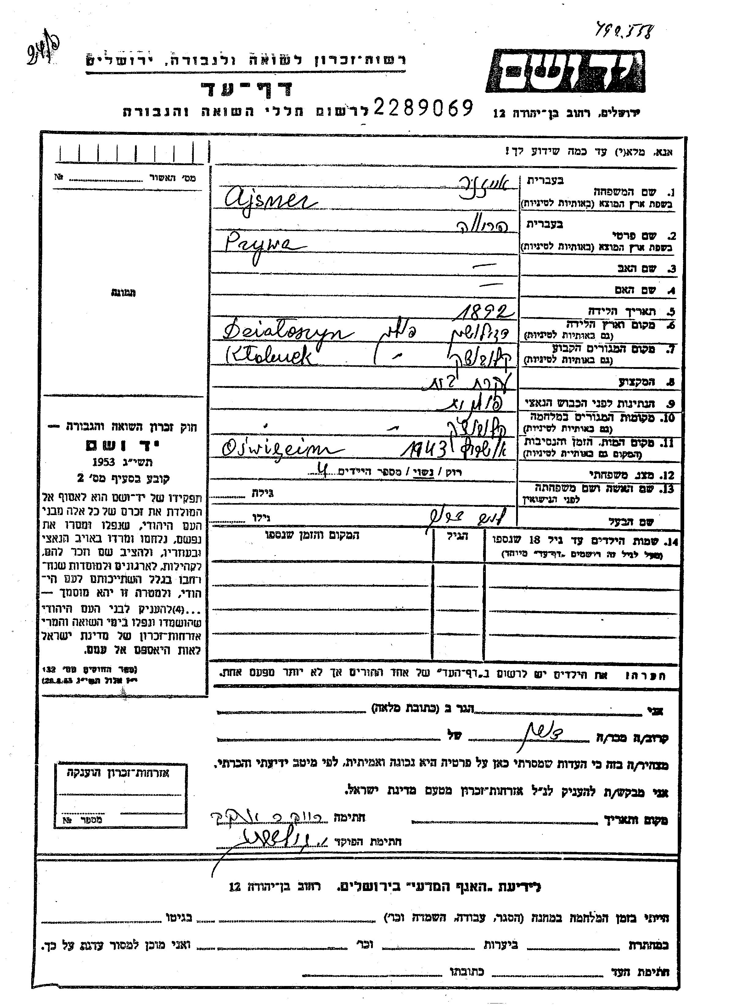 Prywa wurde in der Schoah ermordet. Todesort: Auschwitz, Polen im Jahr 1943.