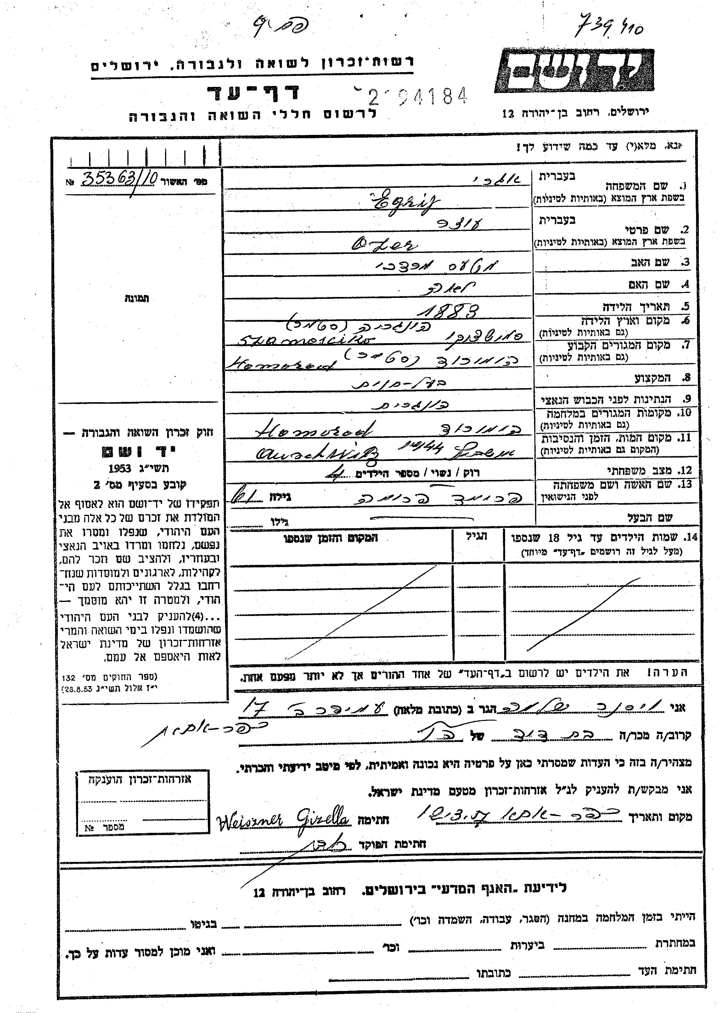 Ozer wurde in der Schoah ermordet. Todesort: Auschwitz, Polen im Jahr 1944.