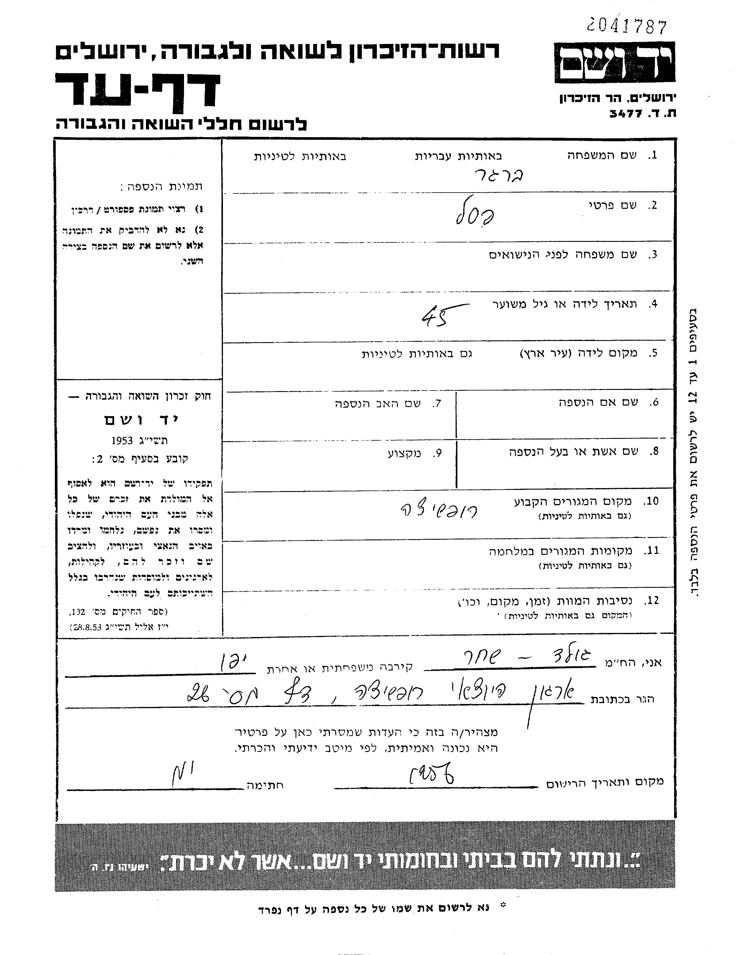 Pesel Berger. Vor dem Zweiten Weltkrieg lebte sie in Ropczyce, Polen.