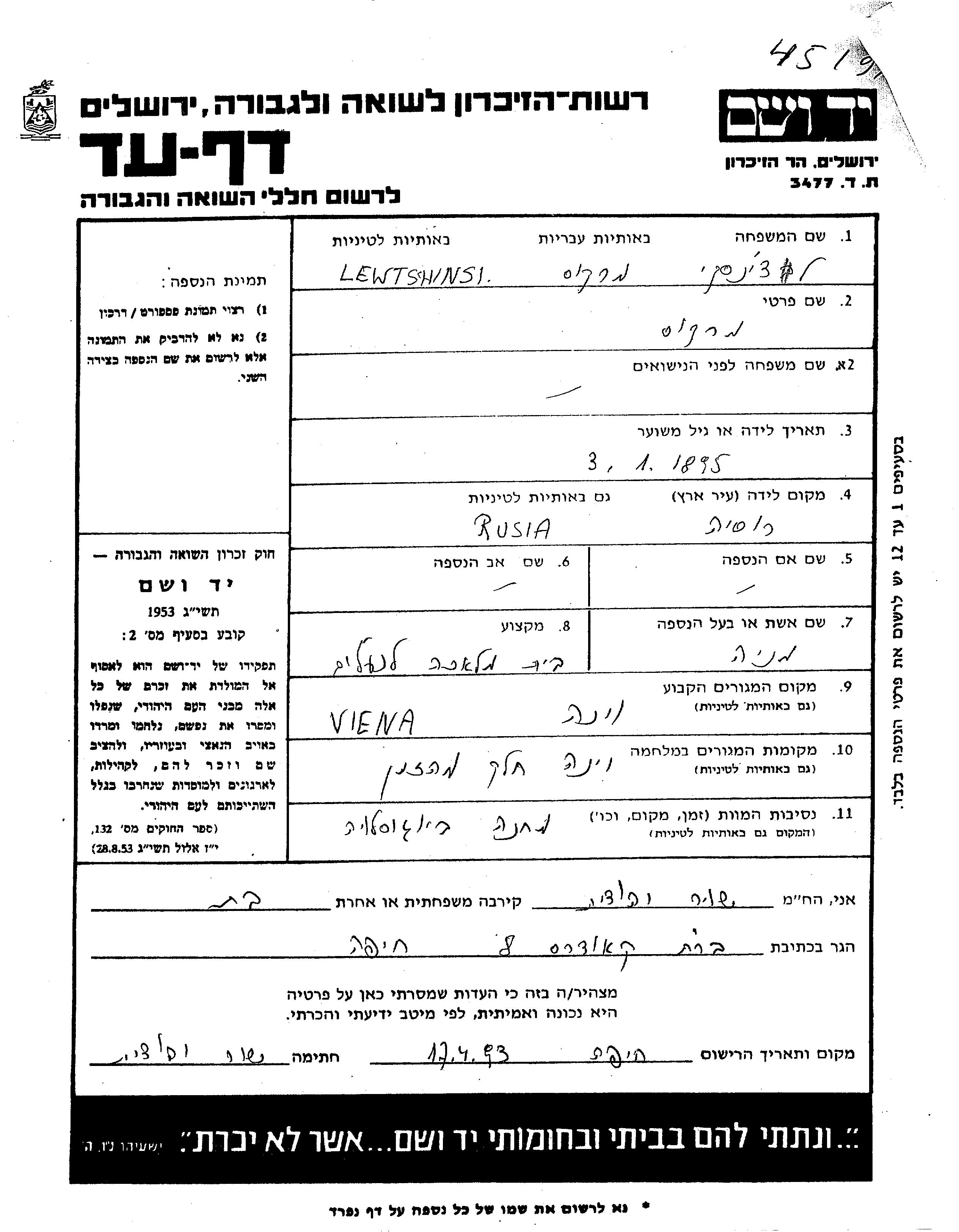 Markus Lewtschinski wurde im Jahr 1895 in Russland (UdSSR) geboren. Er war Schuster/-in und mit Mania Verheiratet. Vor dem Zweiten Weltkrieg lebte er in Wien, Österreich. Während des Krieges war er in Wien, Österreich.