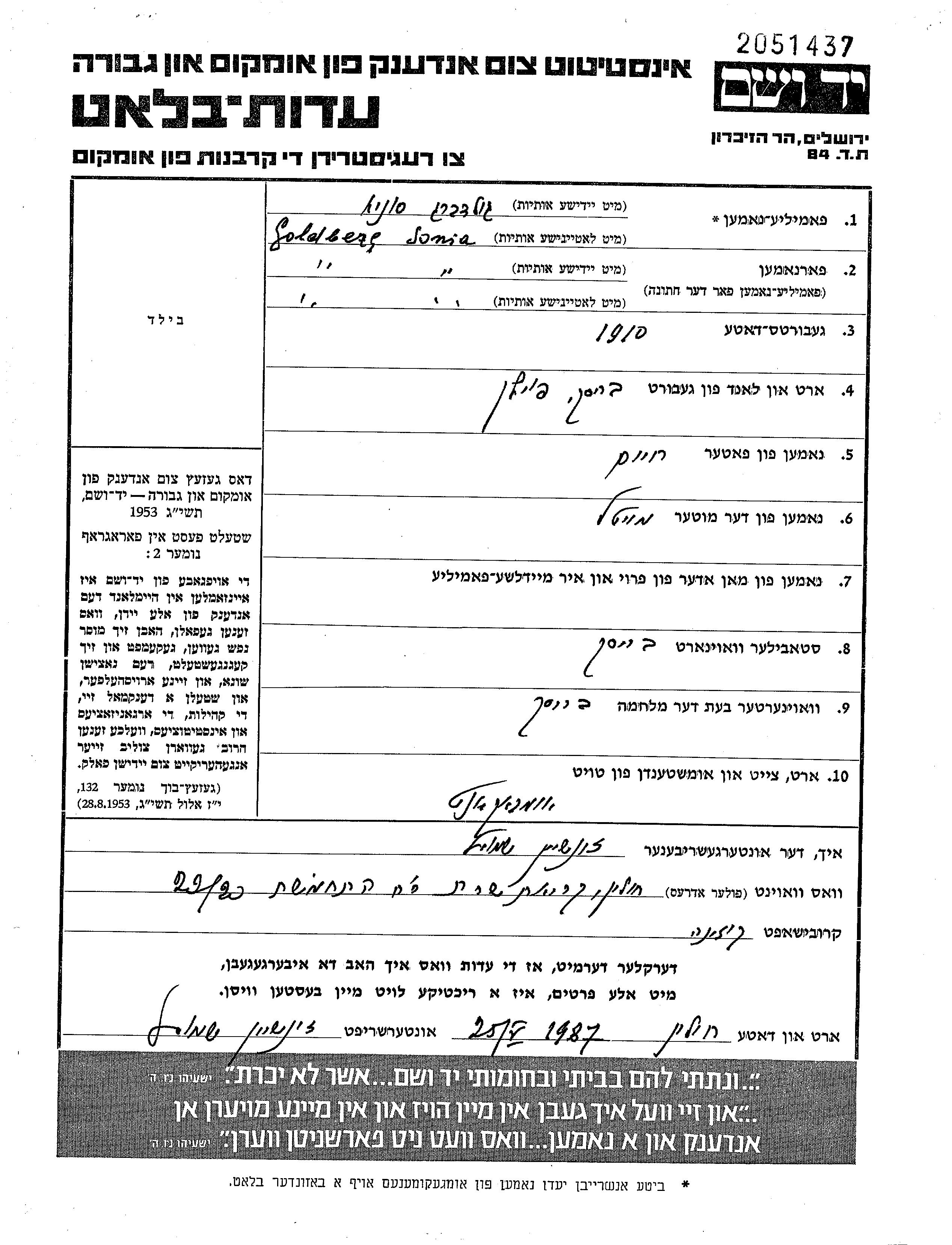 Goldberg Sonia 1910 Brześć nad Bugiem, Polen Gedenkblatt