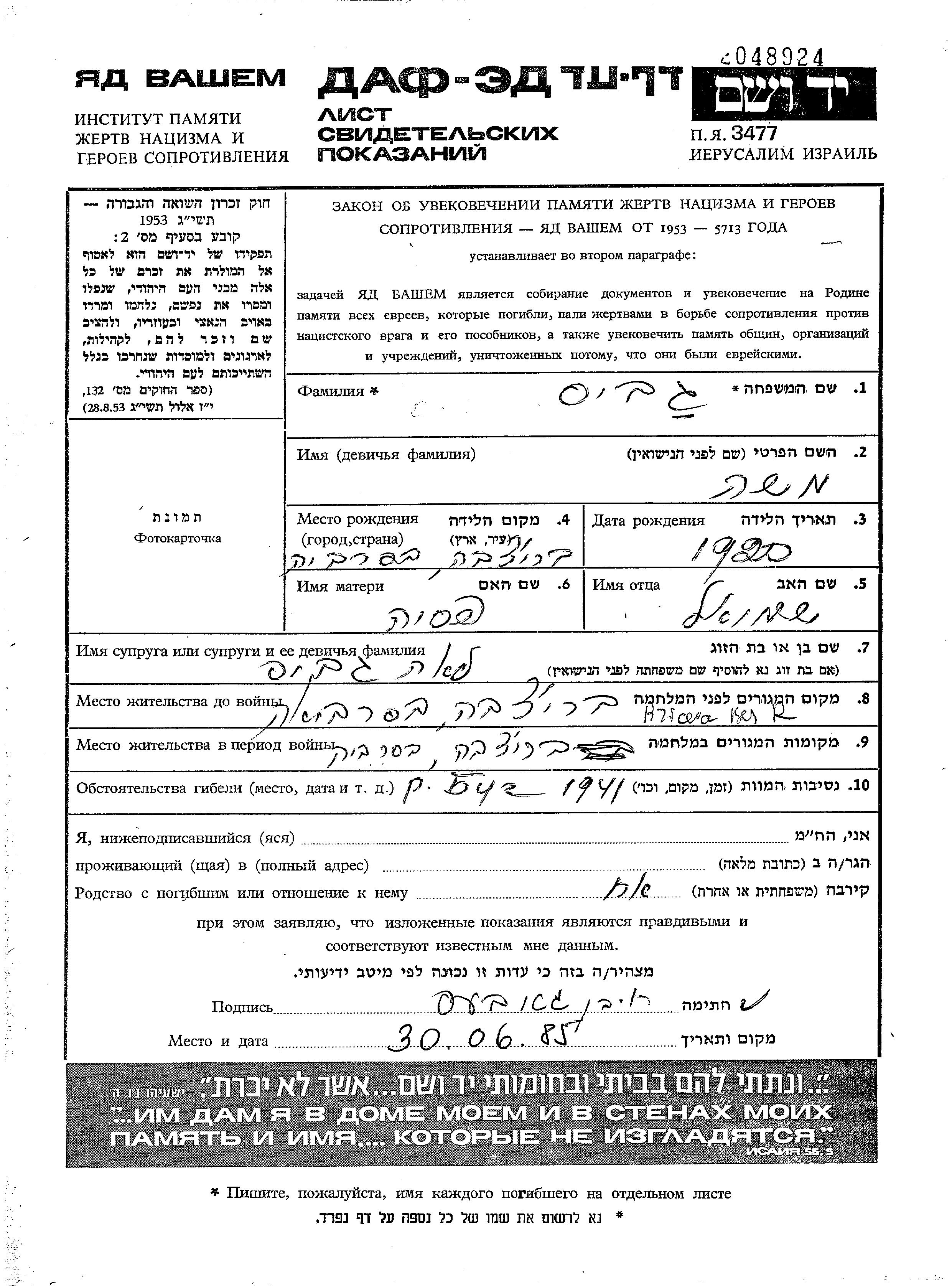 Moshe wurde in der Schoah ermordet. Todesort: unbekannt im Jahr 1941.