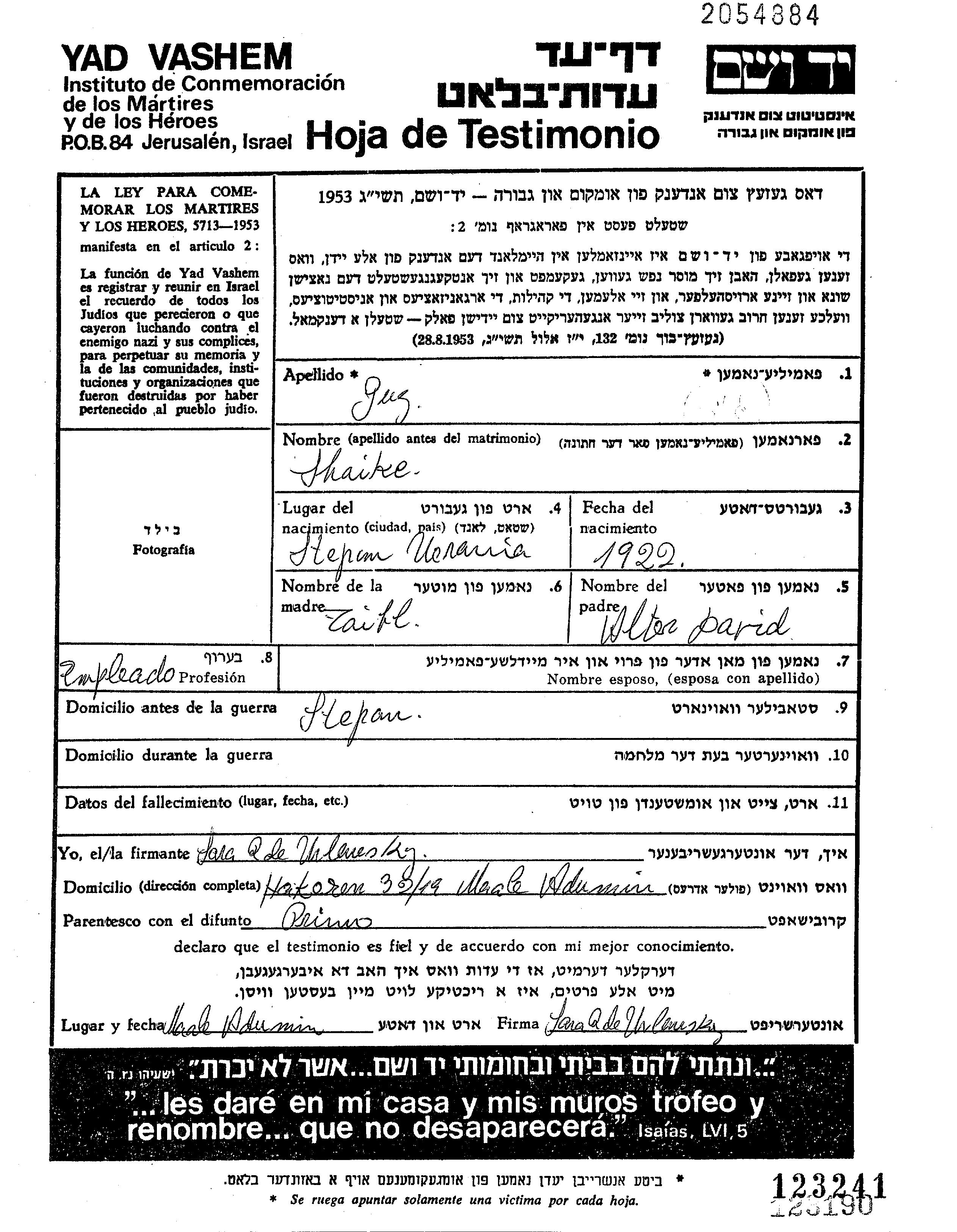 Suche nach einem Todesjahr im Zeitraum der Holocaust: 1933 bis 1945. Bitte wählen Sie 'Exakt' im Auswahlmenü, um nur nach einem einzelnen Jahr zu suchen, alternativ können Sie die flexibleren Optionen '+/- 2 Jahre' oder '+/- 5 Jahre' wählen.