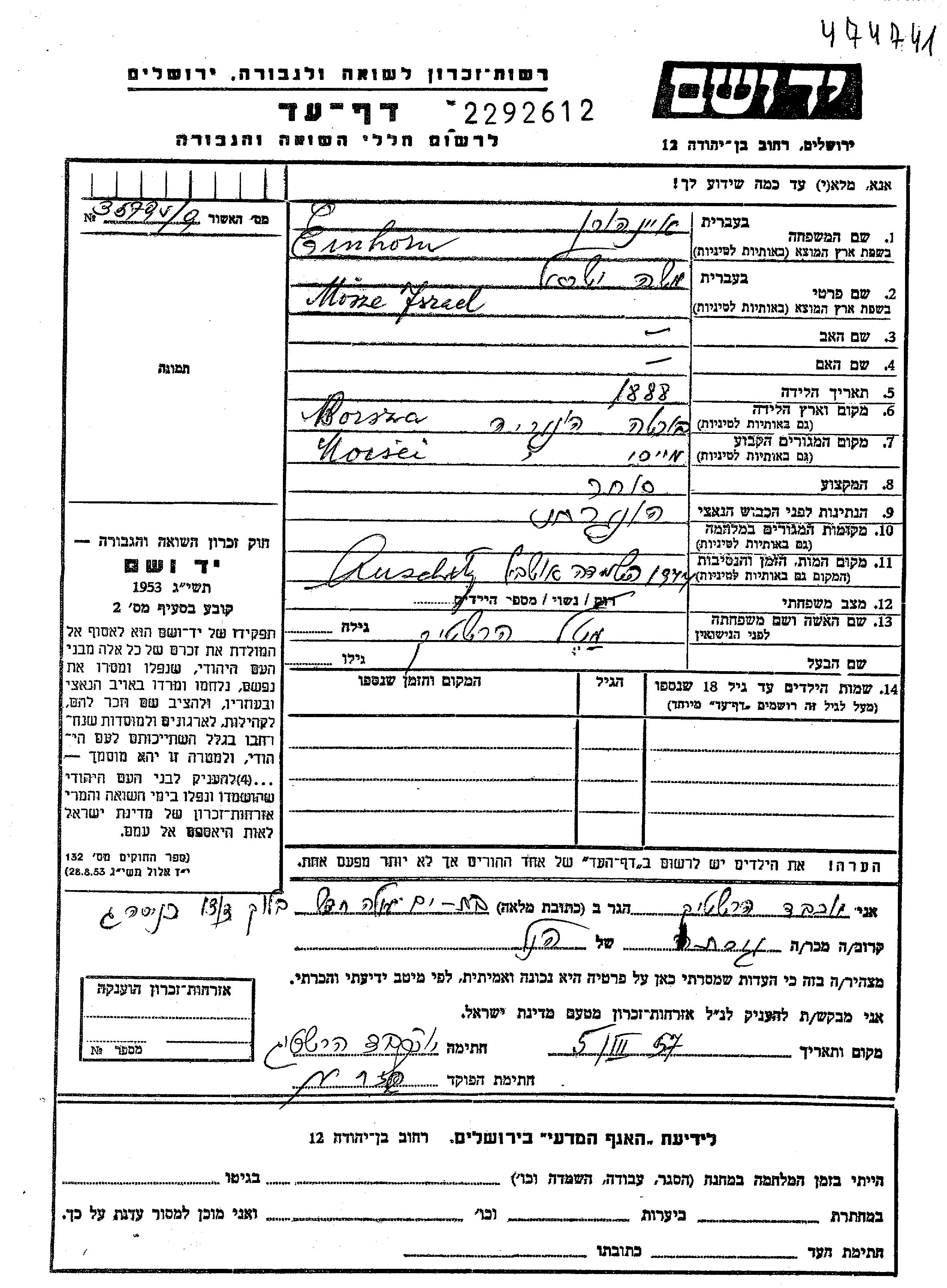 Mosze Yisrael wurde in der Schoah ermordet. Todesort: Auschwitz, Polen im Jahr 1944.