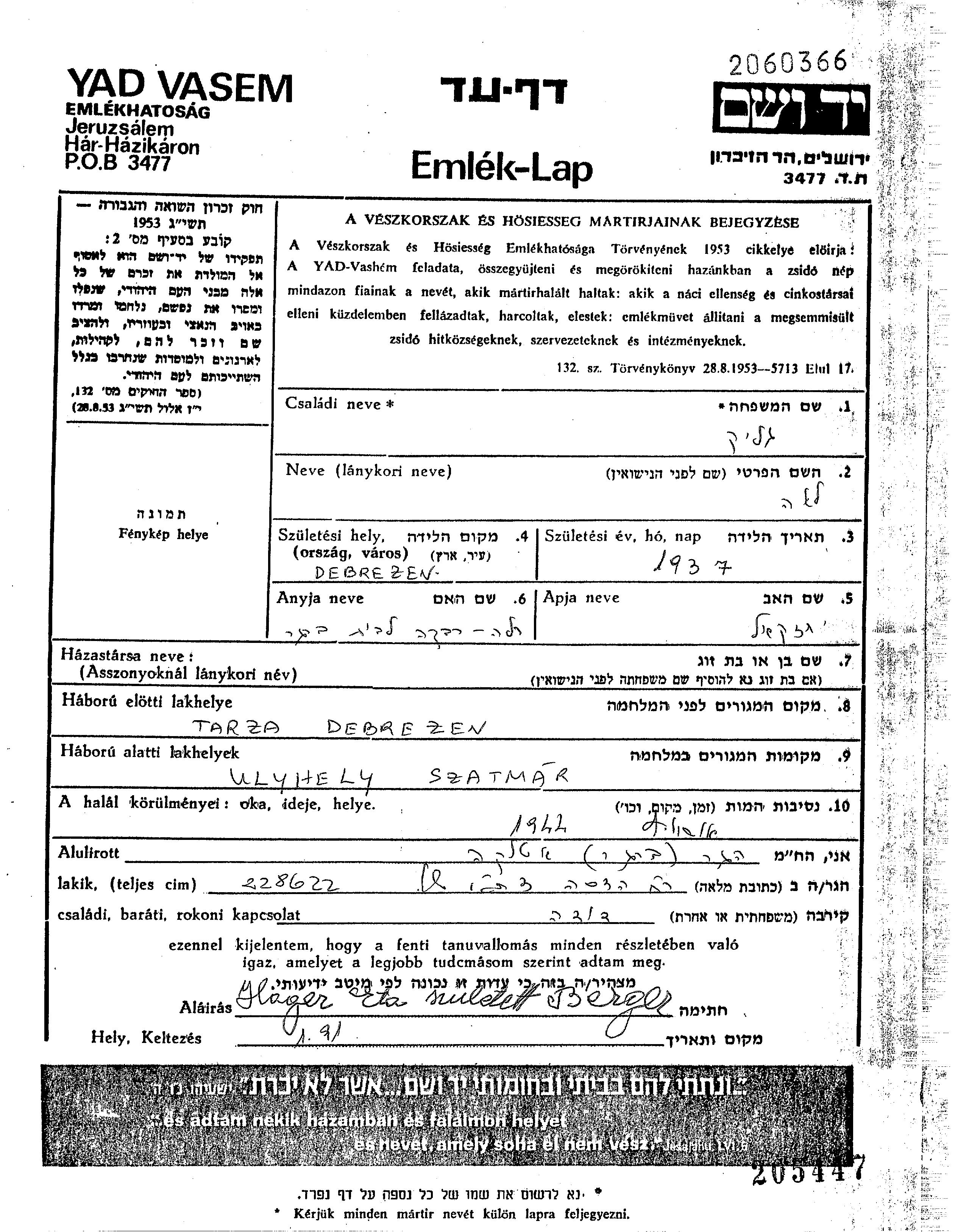 Glik Lea 1937 Debrecen, Ungarn Gedenkblatt