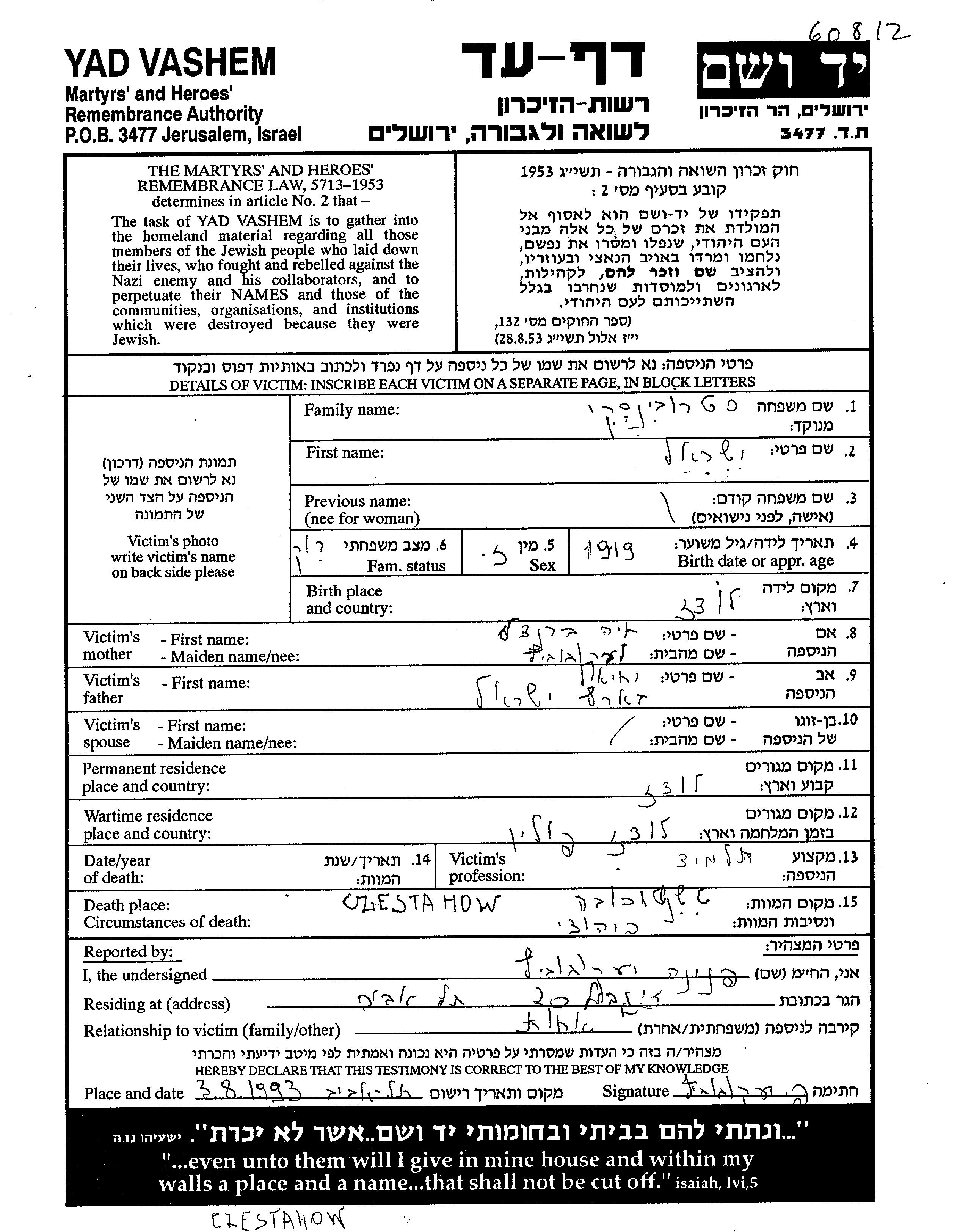 Israel wurde in der Schoah ermordet. Todesort: Czestochowa, Polen.