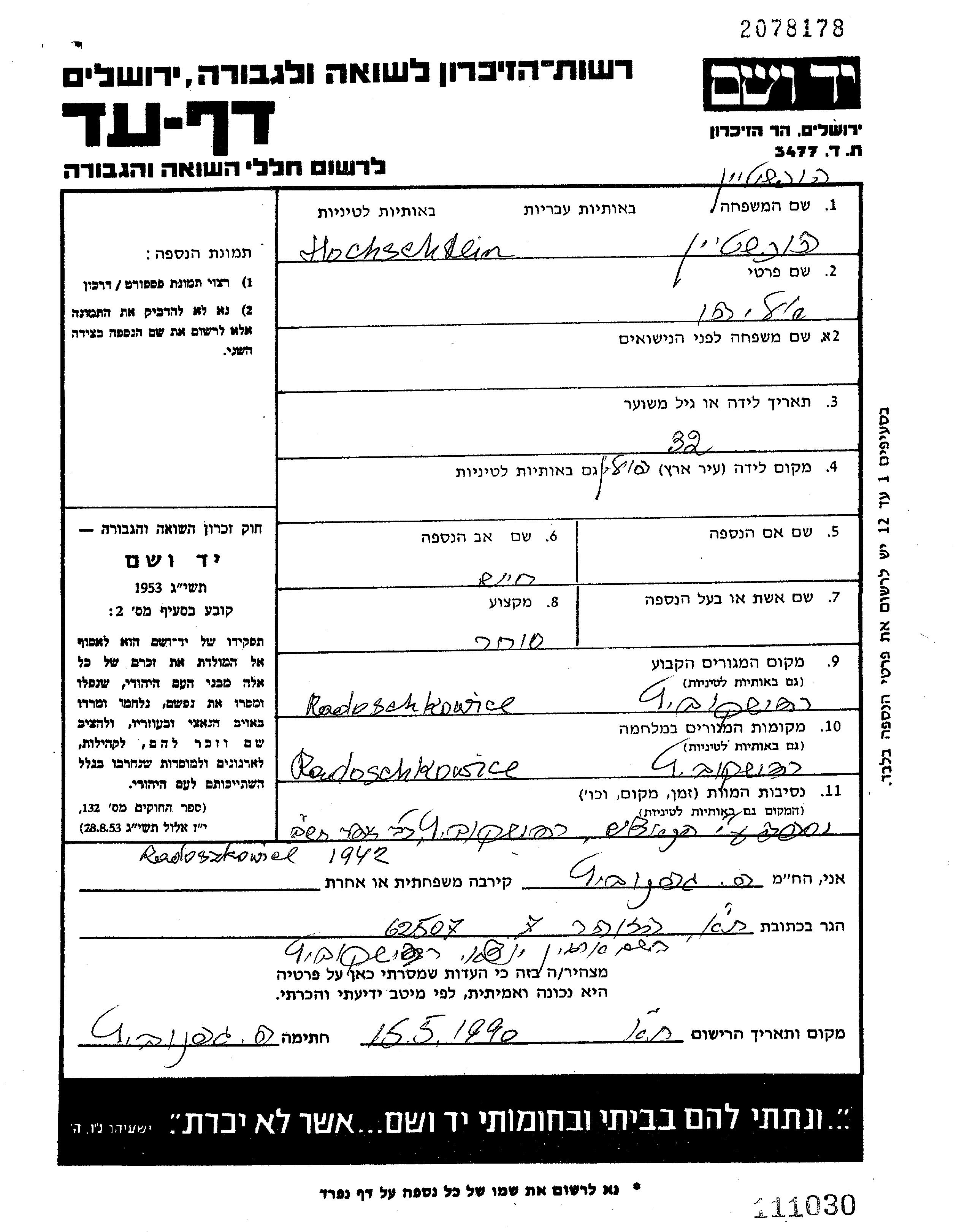 Eliahu wurde in der Schoah ermordet. Todesort: Radoszkowicze, Polen im Jahr 11/03/1942.