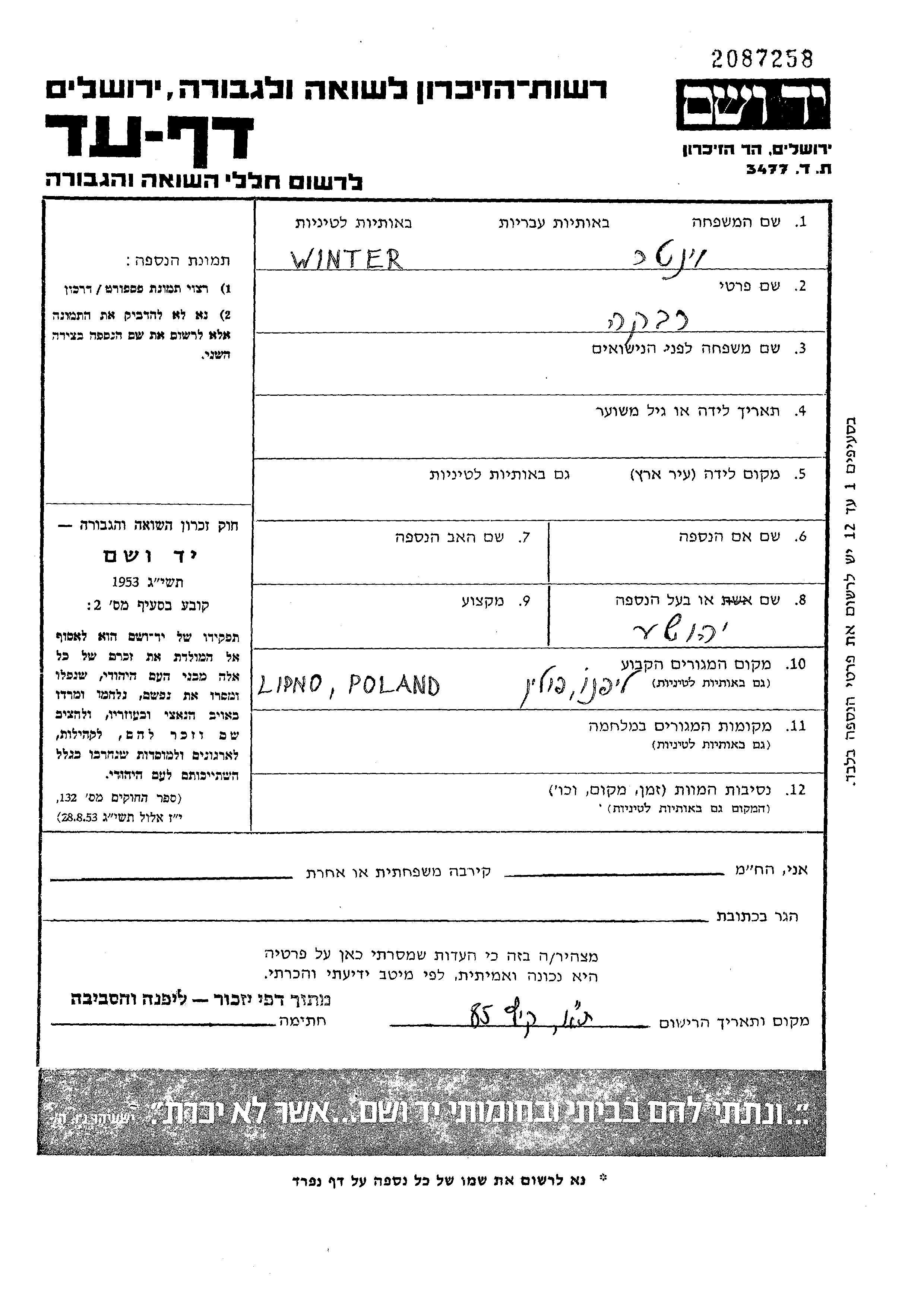 Rivka Winter. Vor dem Zweiten Weltkrieg lebte sie in Lipno, Polen.
