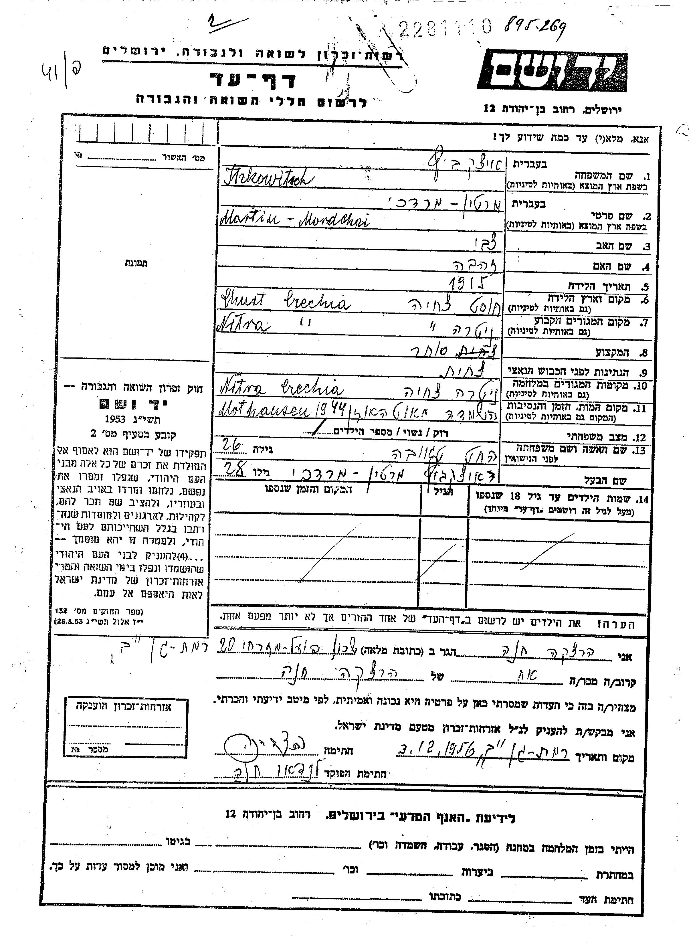 Martin Mordekhai wurde in der Schoah ermordet. Todesort: Mauthausen, Österreich im Jahr 1944.