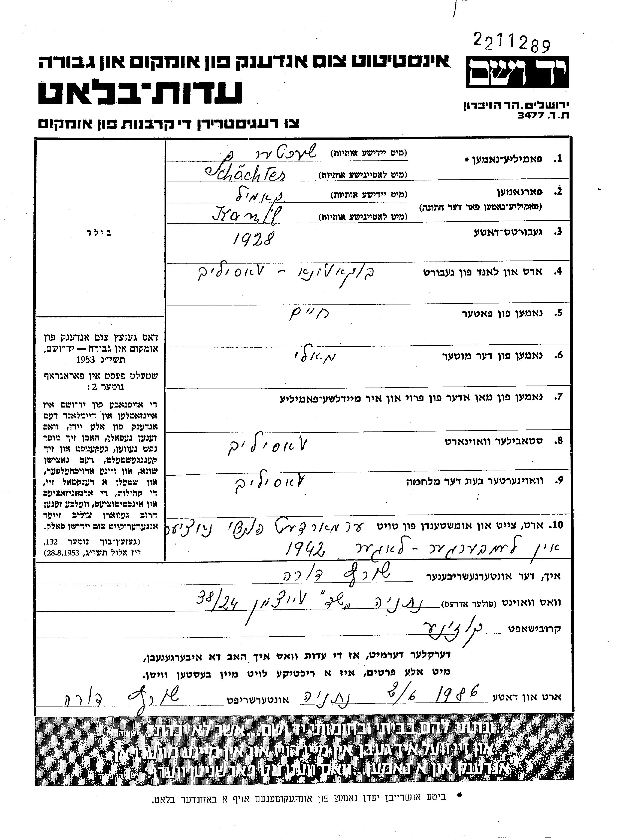 Kamil Schächter wurde in Vasilev, Rumänien geboren. Er war der Sohn von Chaim und Mali Mali, geb. Shenker. Er war Schüler/-in und Kind. Vor dem Zweiten Weltkrieg lebte er in Vasilev, Rumänien. Während des Krieges war er in Vasilev, Rumänien.