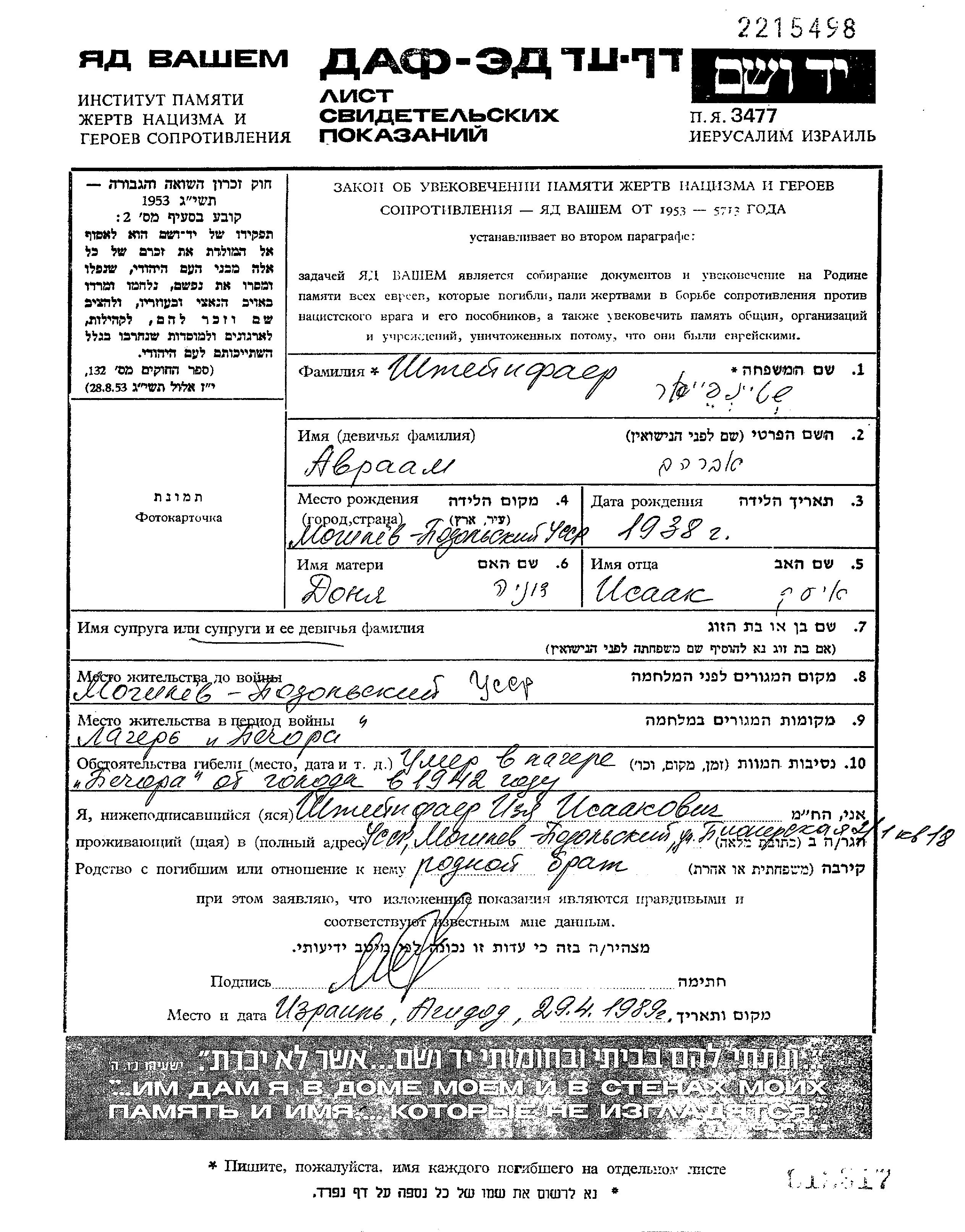 Juden wurden in der Schoah auf verschiedenste Weisen ermordet, unter anderem: Vergasen, Erschiessen, lebendig verbrannt werden, lebendig begraben werden, Tod durch Erschöpfung durch Zwangsarbeit, Epidemien, mangels jeder hygienischer Bedingung oder dem Fehlen medizinischer Versorgung. Manche Juden nahmen sich das Leben, um der Festnahme und weiterer Verfolgung zu entgehen oder ihr hoffnungsloses, nicht nachlassendes Leiden zu beenden.