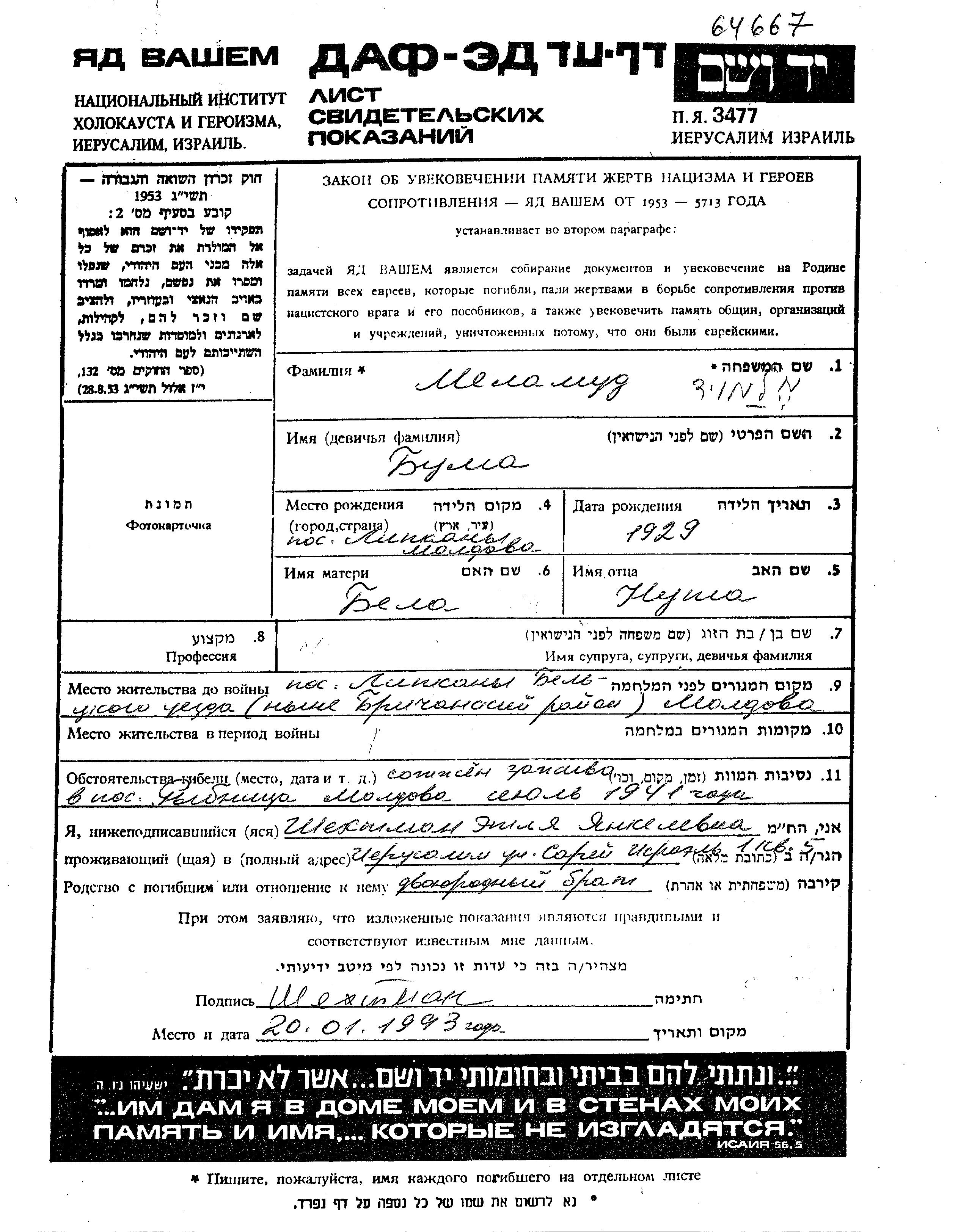 Melamud Avraham 1929 Lipcani, Rumänien Gedenkblatt