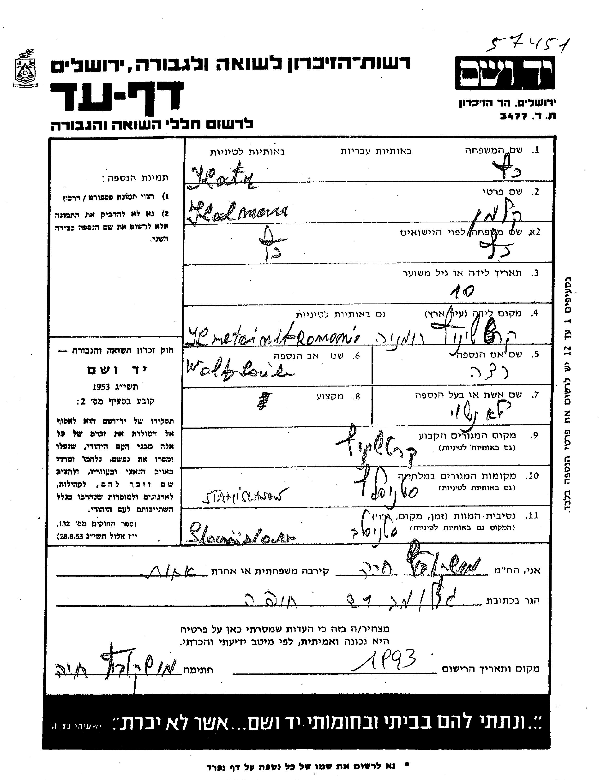 Kalman wurde in der Schoah ermordet. Todesort: Stanislawow, Polen.