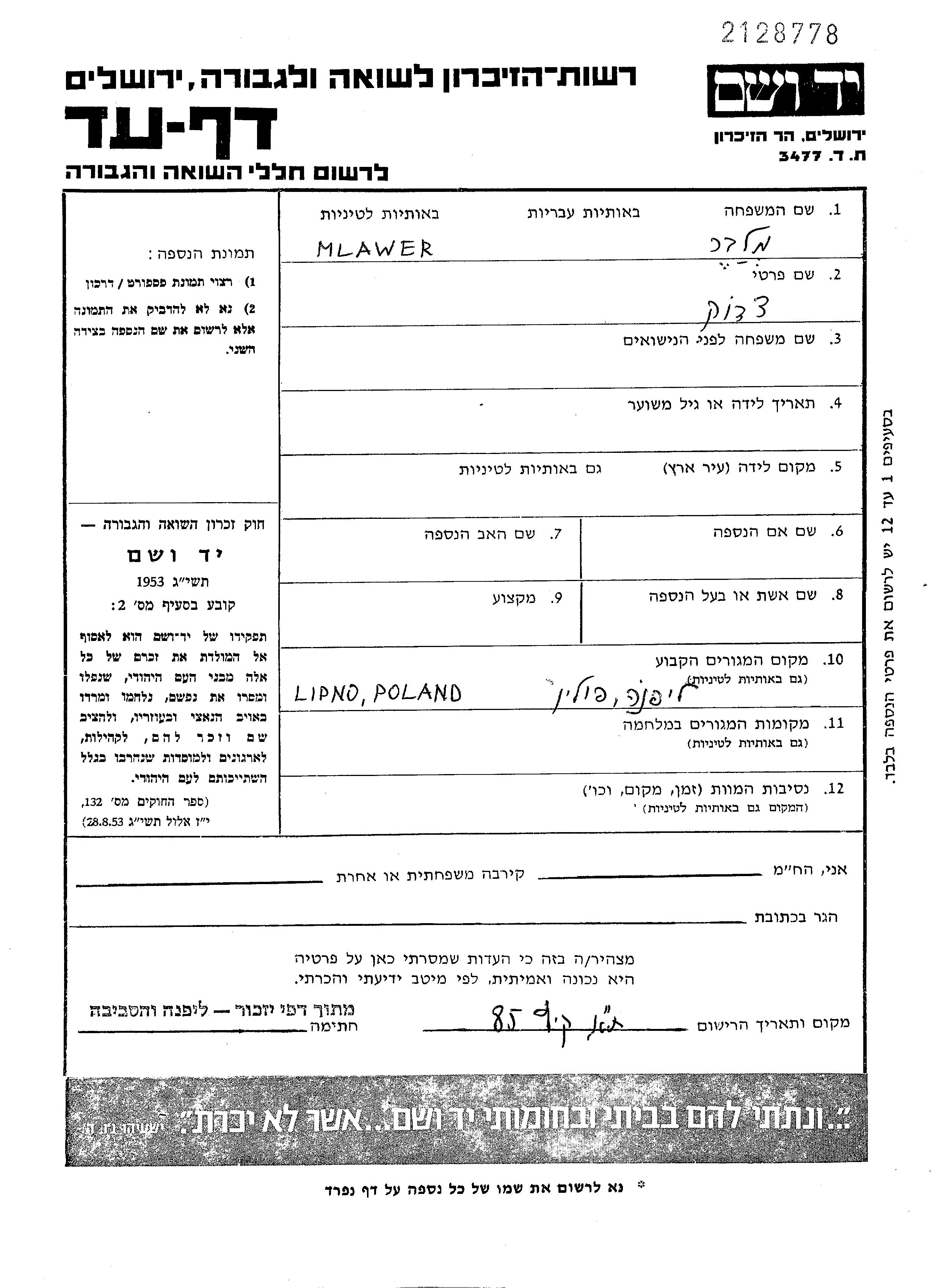 Tzadok Mlawer. Vor dem Zweiten Weltkrieg lebte er in Lipno, Polen.