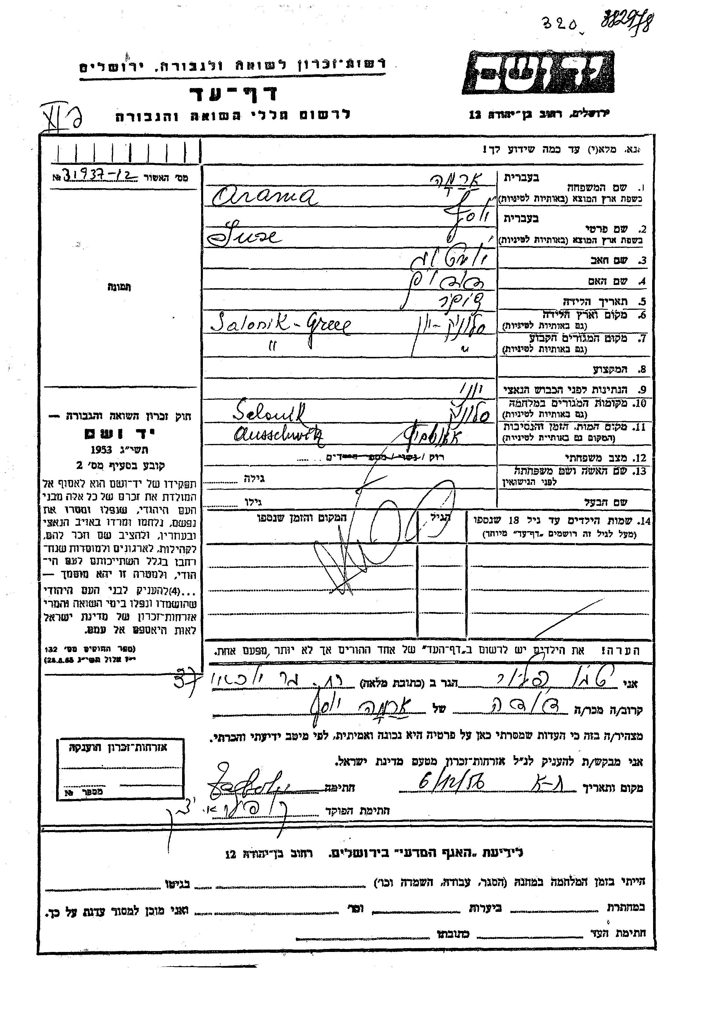 Yusef wurde in der Schoah ermordet. Todesort: Auschwitz, Polen.