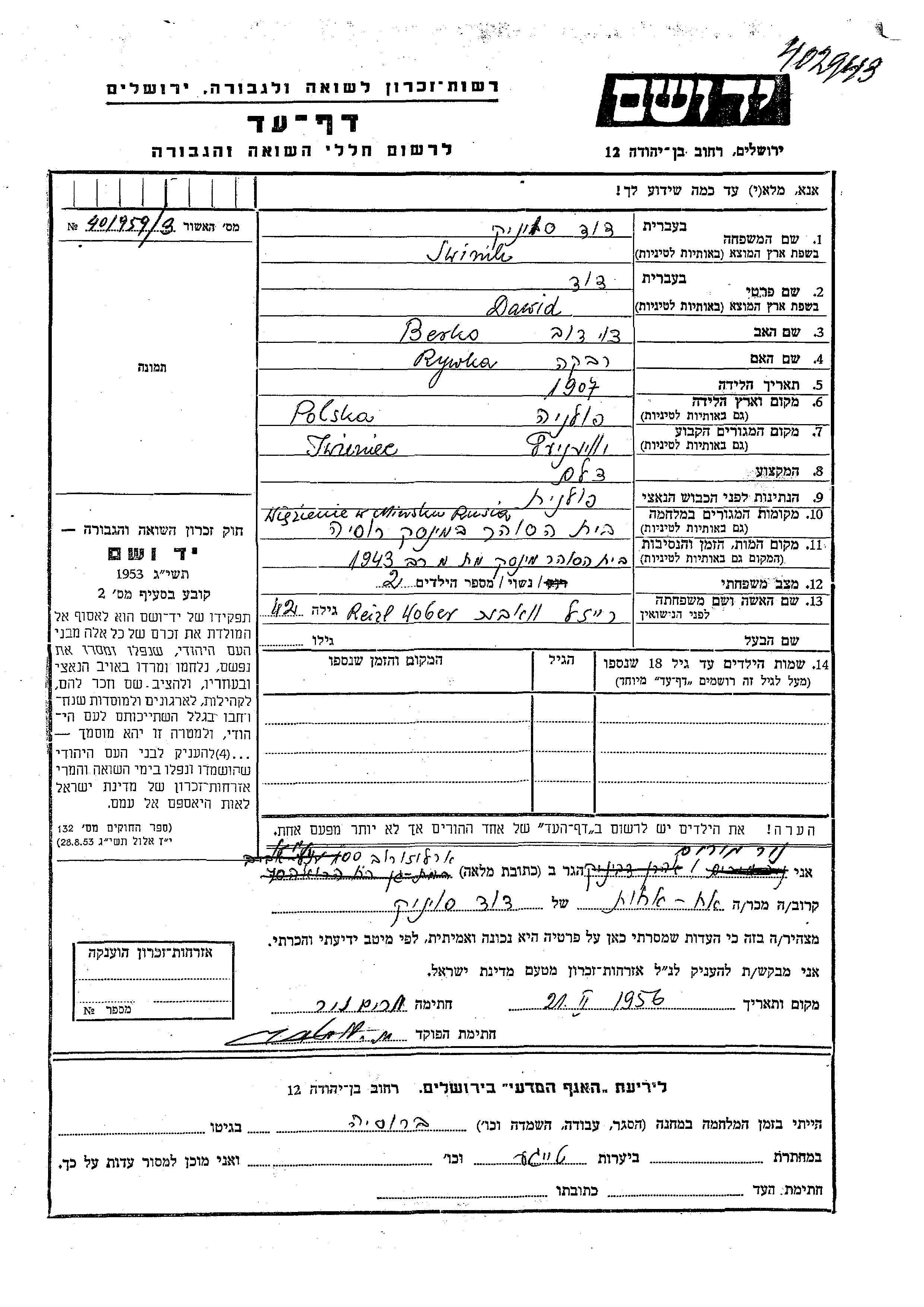 Dawid wurde in der Schoah ermordet. Todesort: Minsk, Weißrussland (UdSSR) im Jahr 1943.