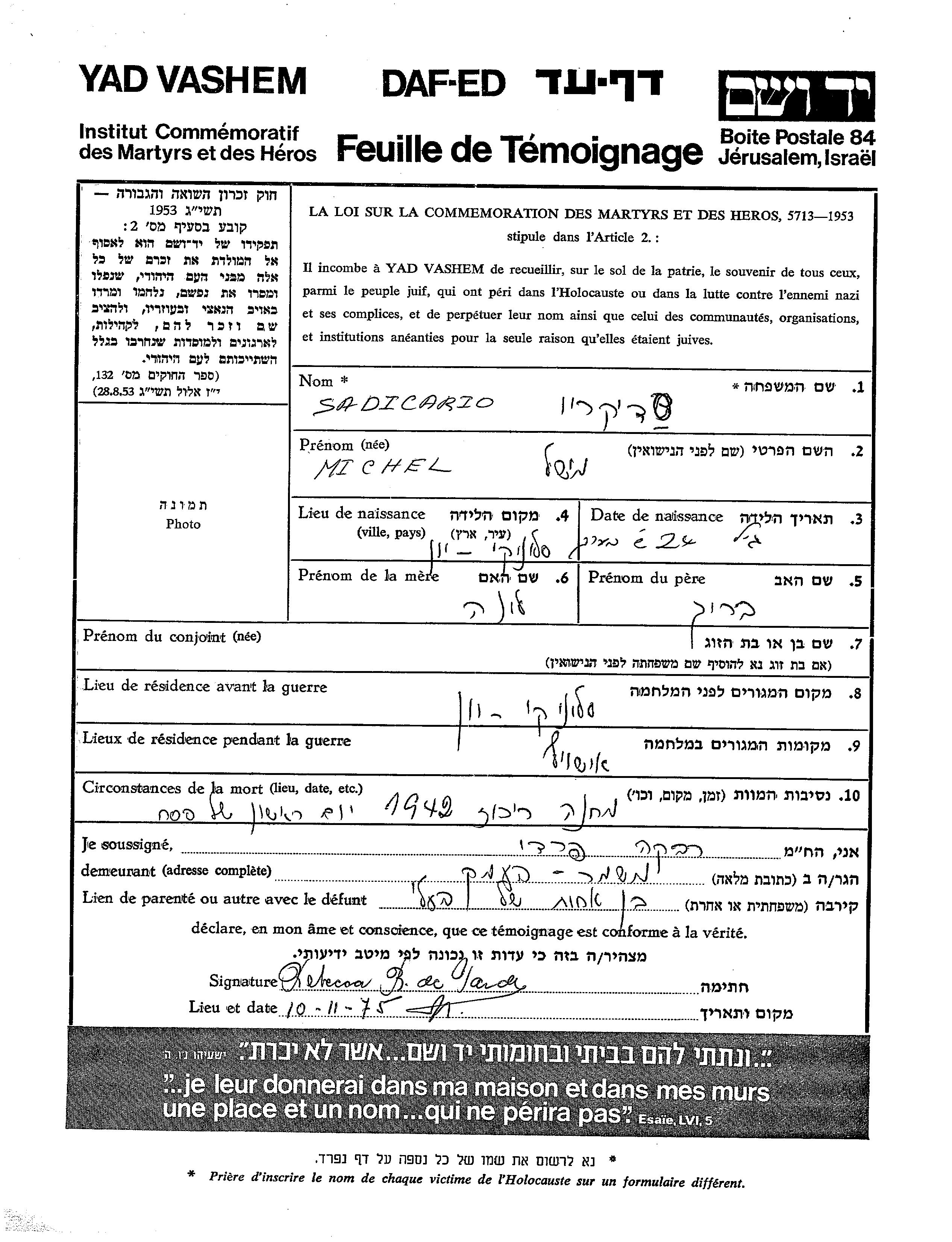 Michel wurde in der Schoah ermordet. Todesort: Auschwitz, Polen im Jahr 1942.