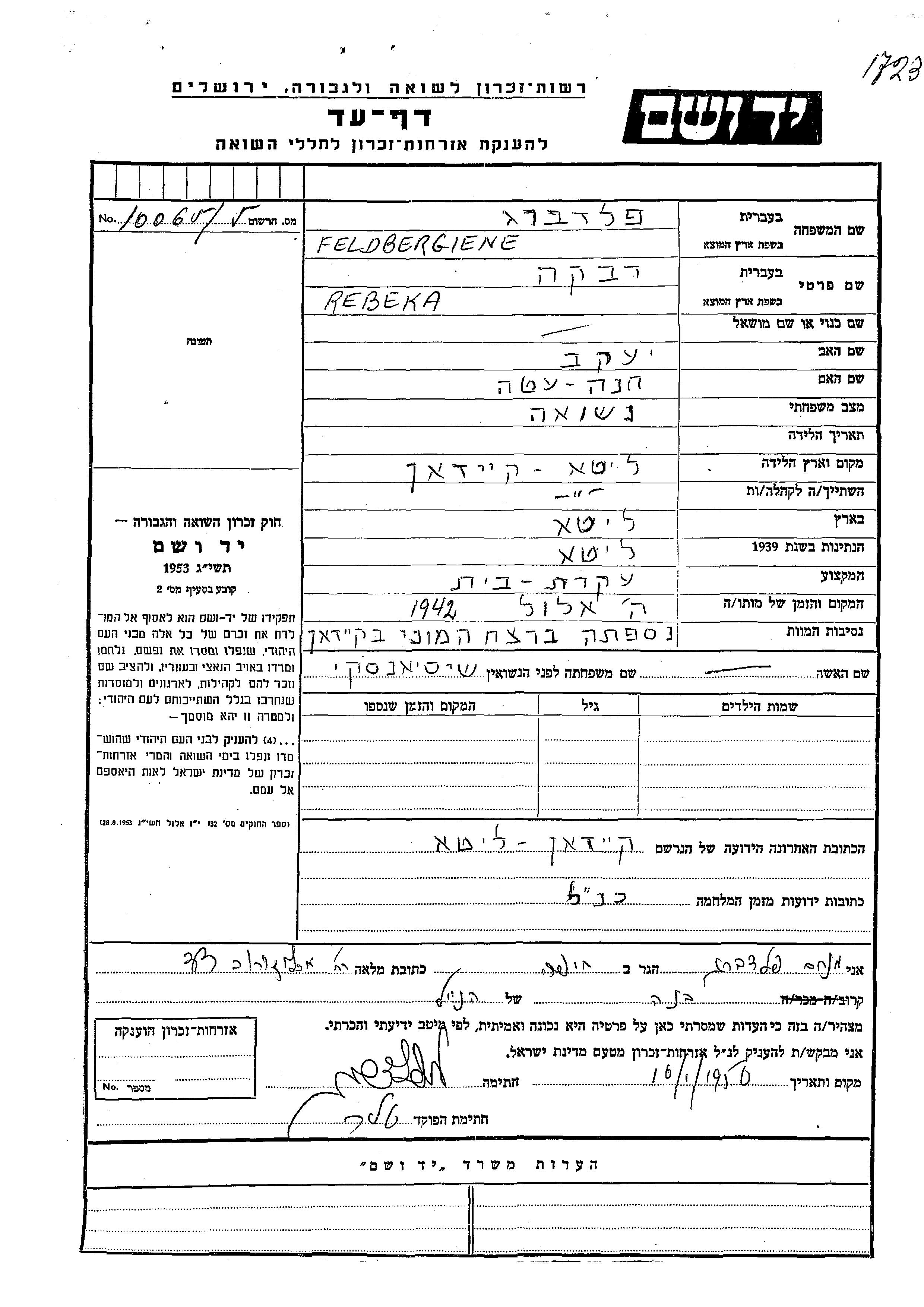 Rebeka wurde in der Schoah ermordet. Todesort: unbekannt im Jahr 1942.