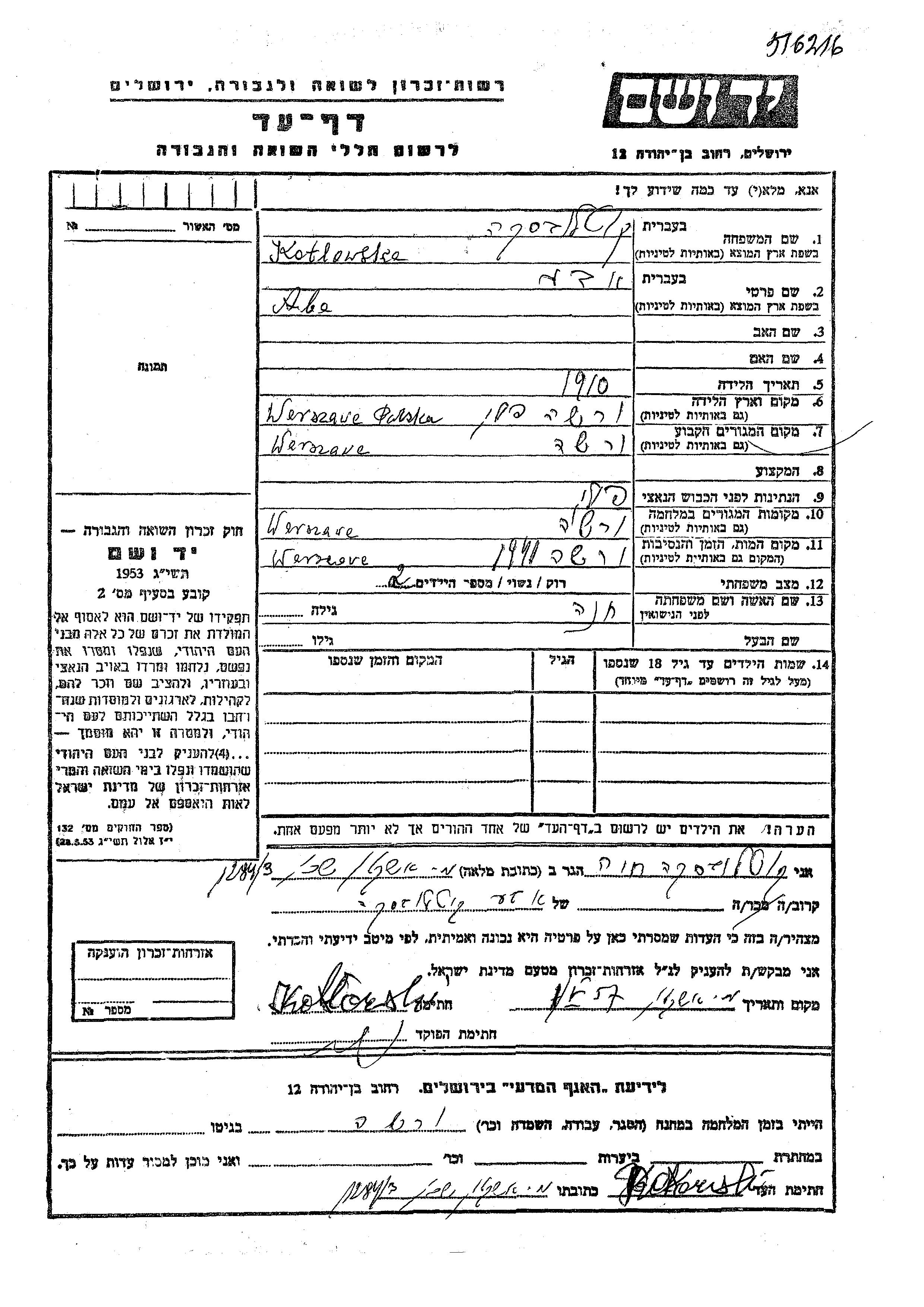 Aba Kotlowska wurde im Jahr 1910 in Warszawa, Polen geboren. Vor dem Zweiten Weltkrieg lebte er in Warszawa, Polen. Während des Krieges war er in Warszawa, Polen.