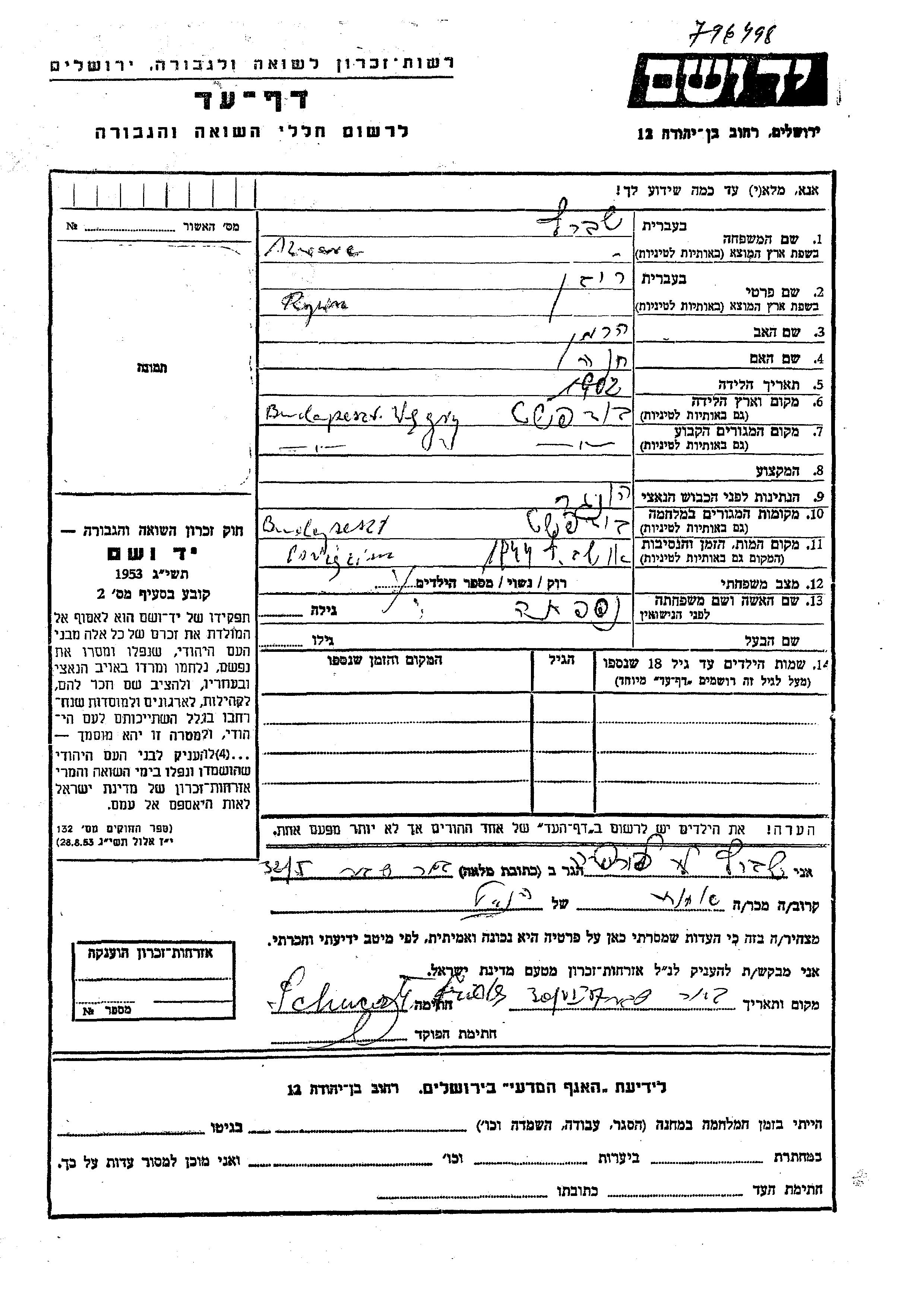 Szwarc Ruven 1902 Budapest, Ungarn Gedenkblatt