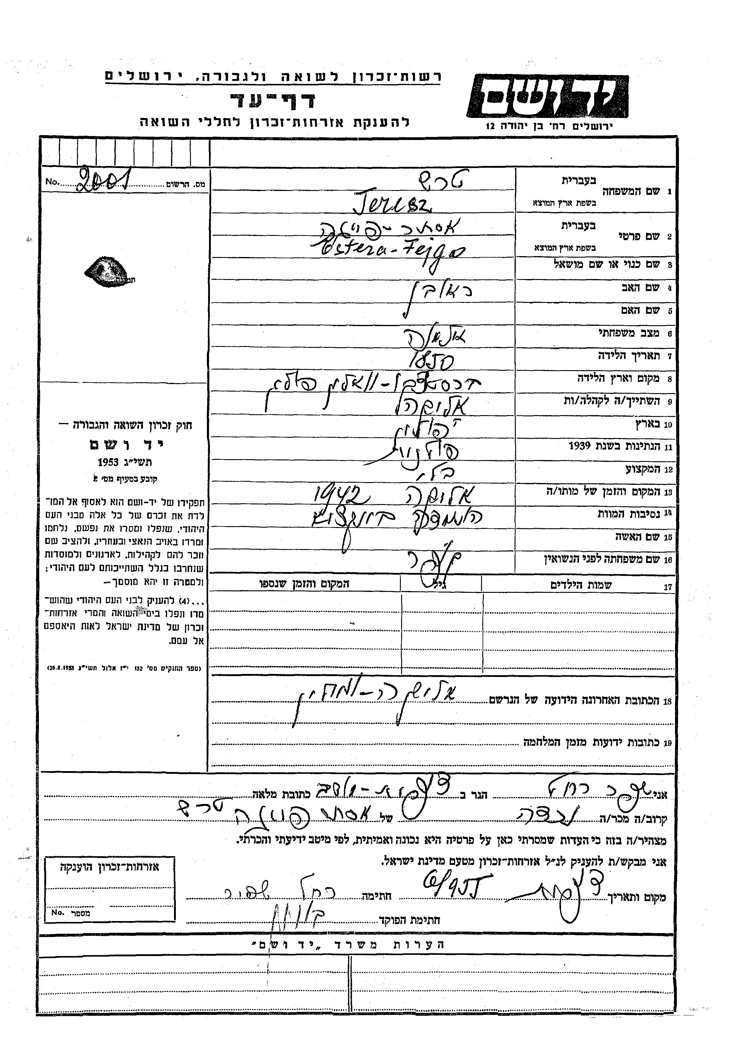Estera Feiga wurde in der Schoah ermordet. Todesort: unbekannt im Jahr 1942.
