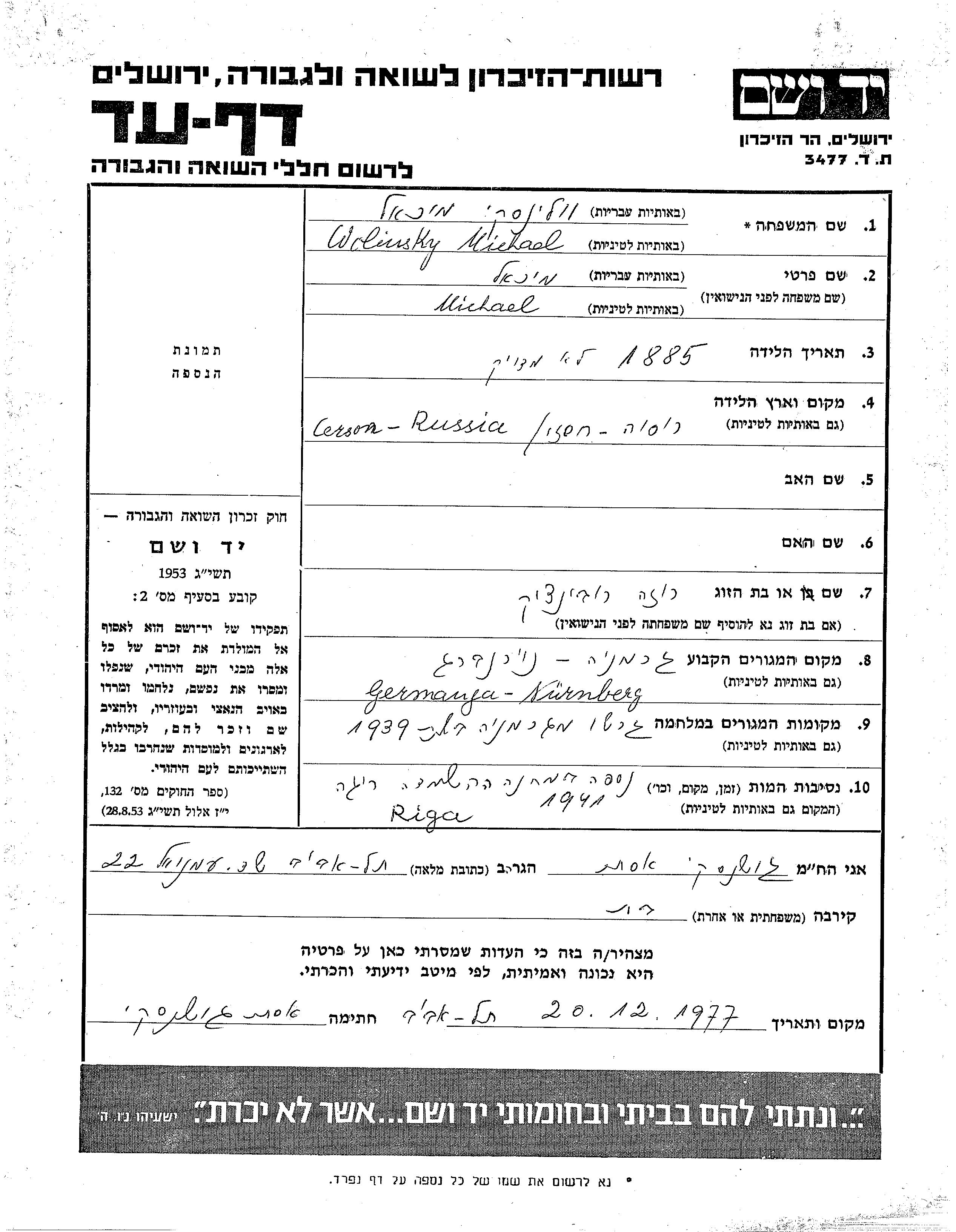 Michael wurde in der Schoah ermordet. Todesort: Riga, Lettland im Jahr 1941.