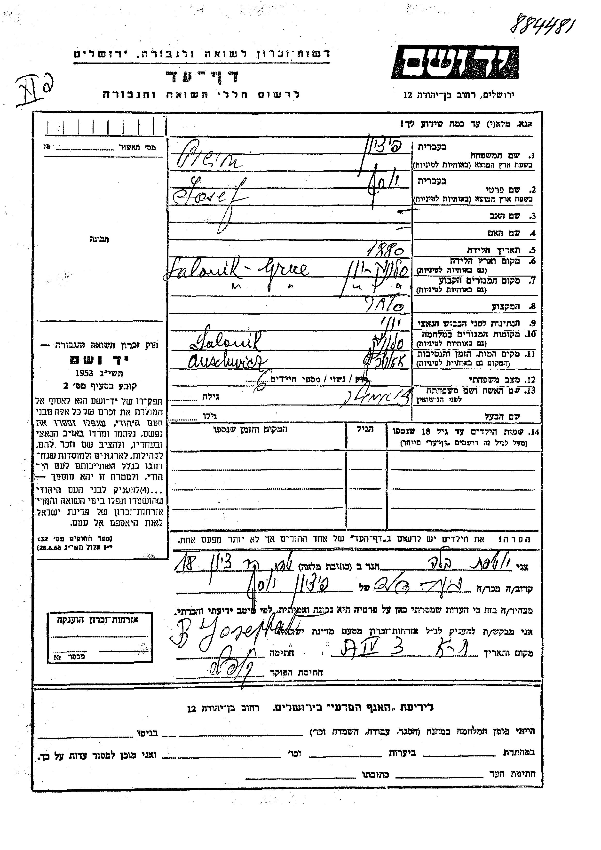 Yosef wurde in der Schoah ermordet. Todesort: Auschwitz, Polen.