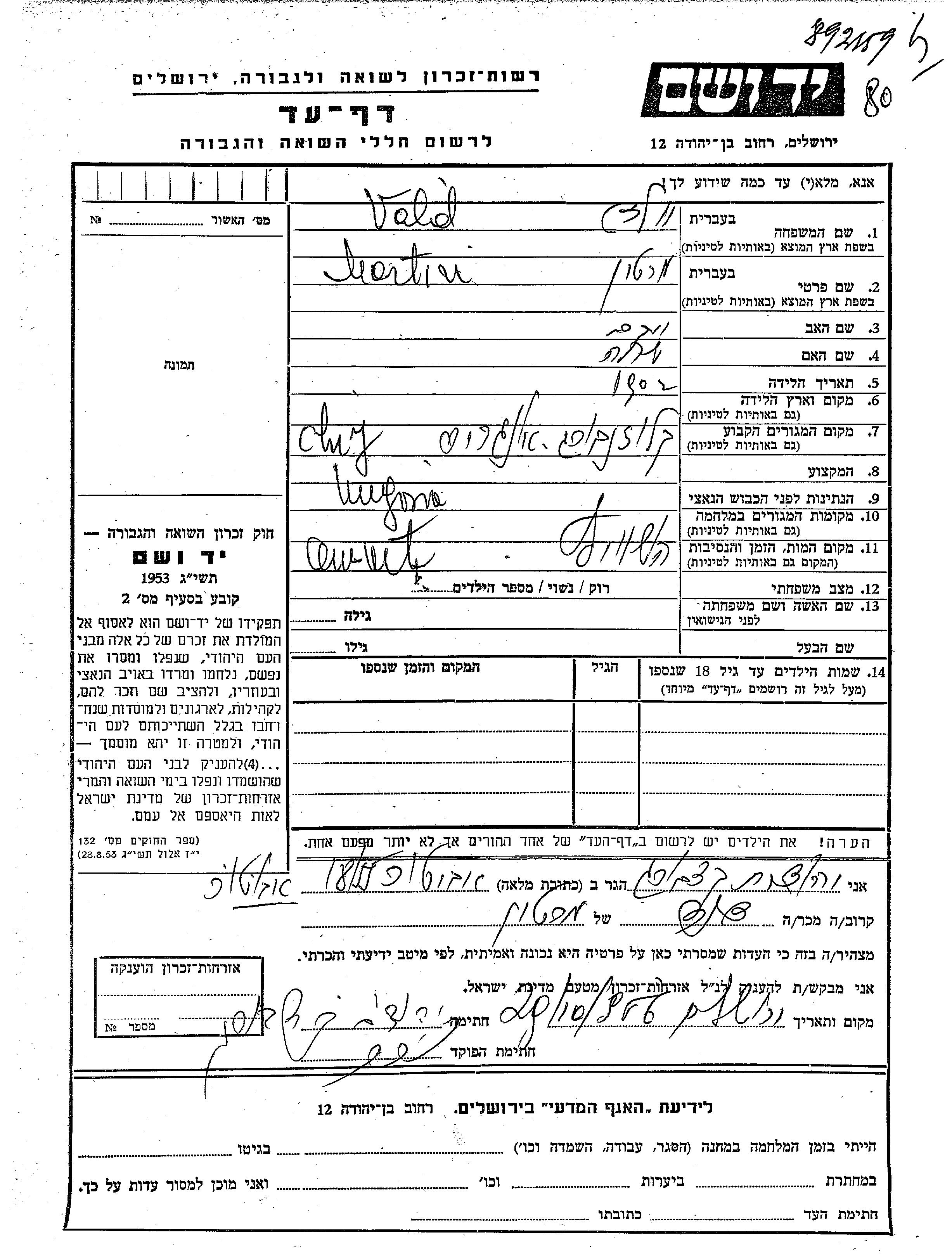 Martin Vald Valid wurde im Jahr 1902 geboren. Er war der Sohn von Yaakov und Sara.