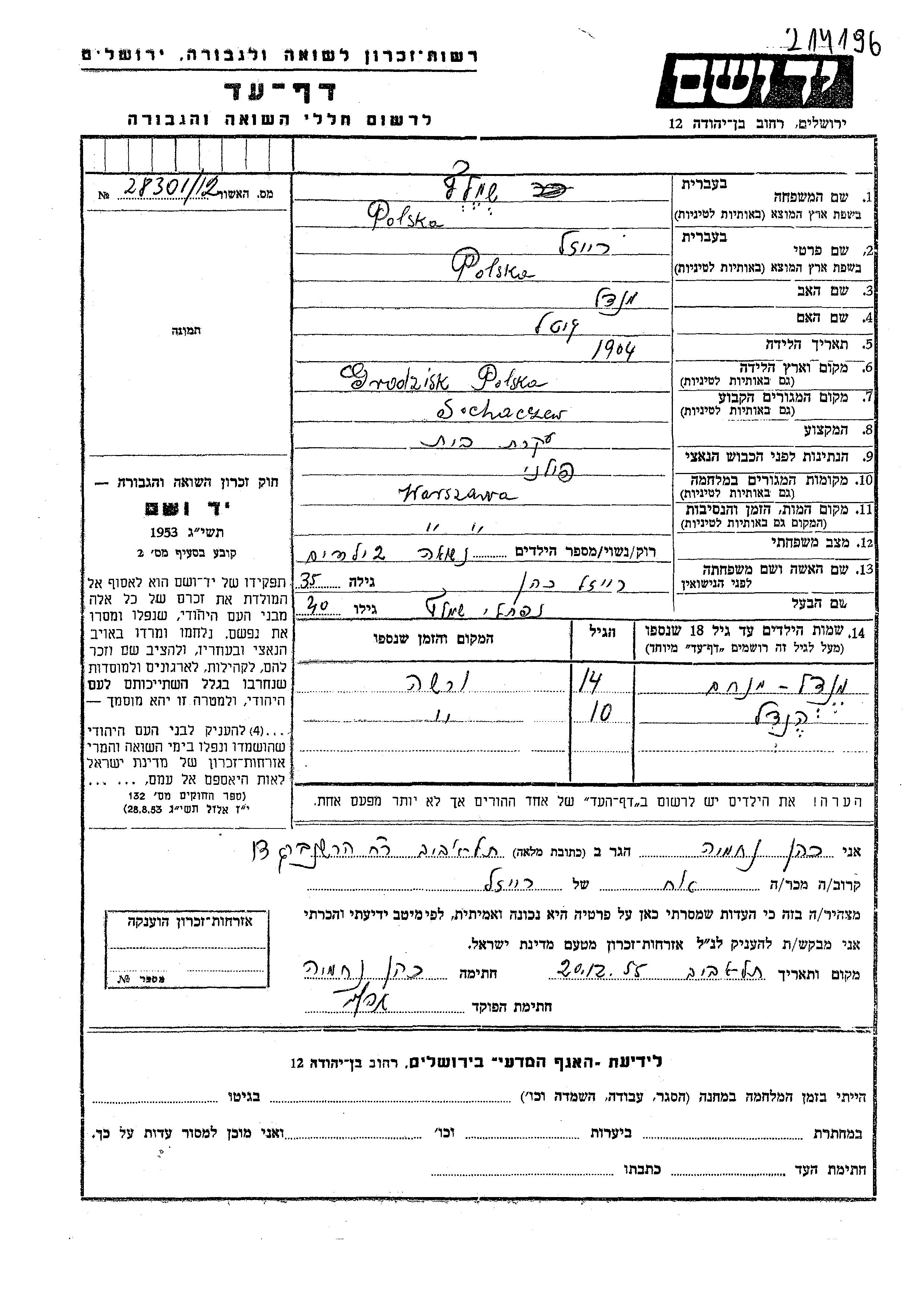 Reizl wurde in der Schoah ermordet. Todesort: Warsaw, Polen.