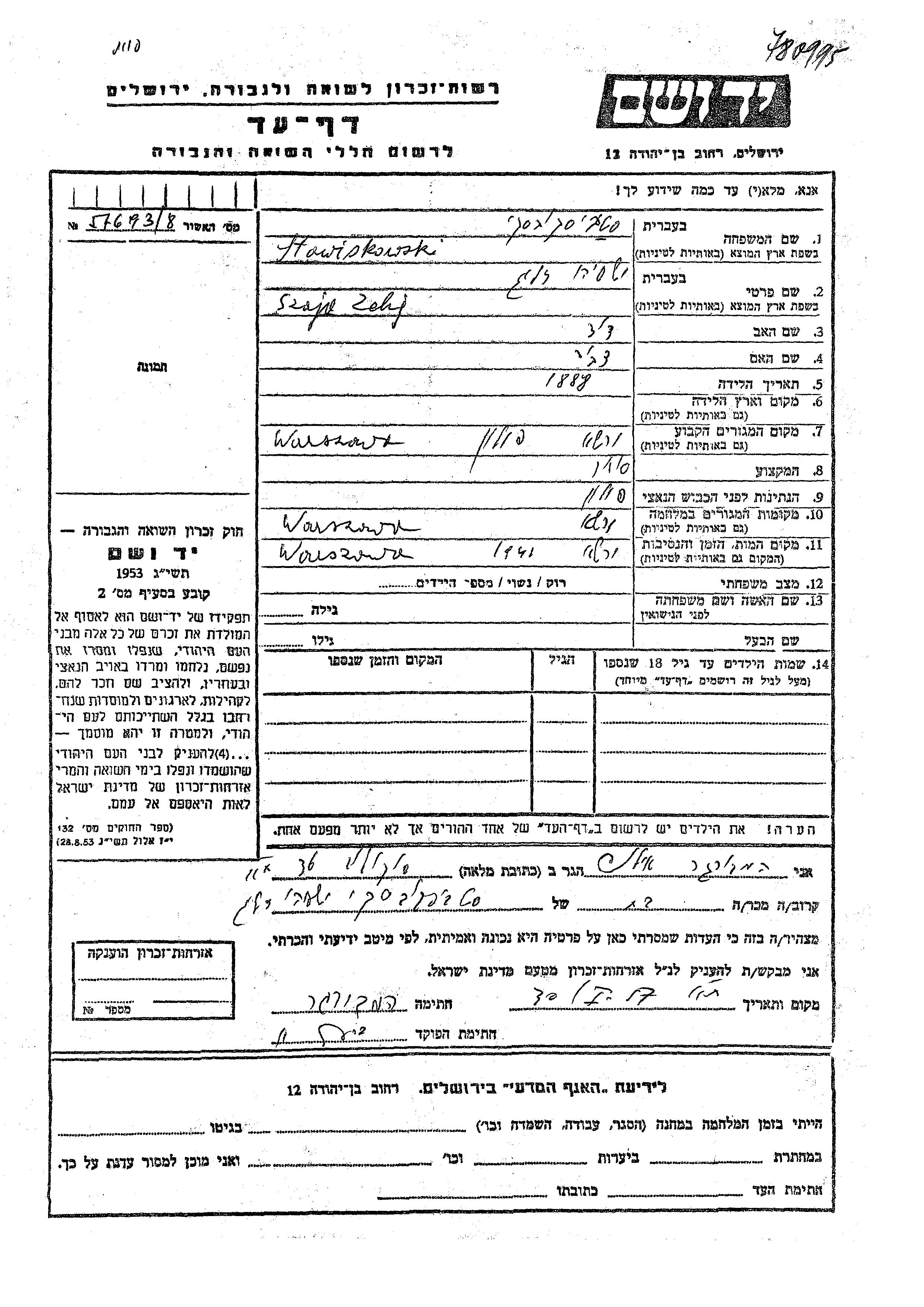 Szaja Zelig wurde in der Schoah ermordet. Todesort: Warsaw, Polen im Jahr 1941.