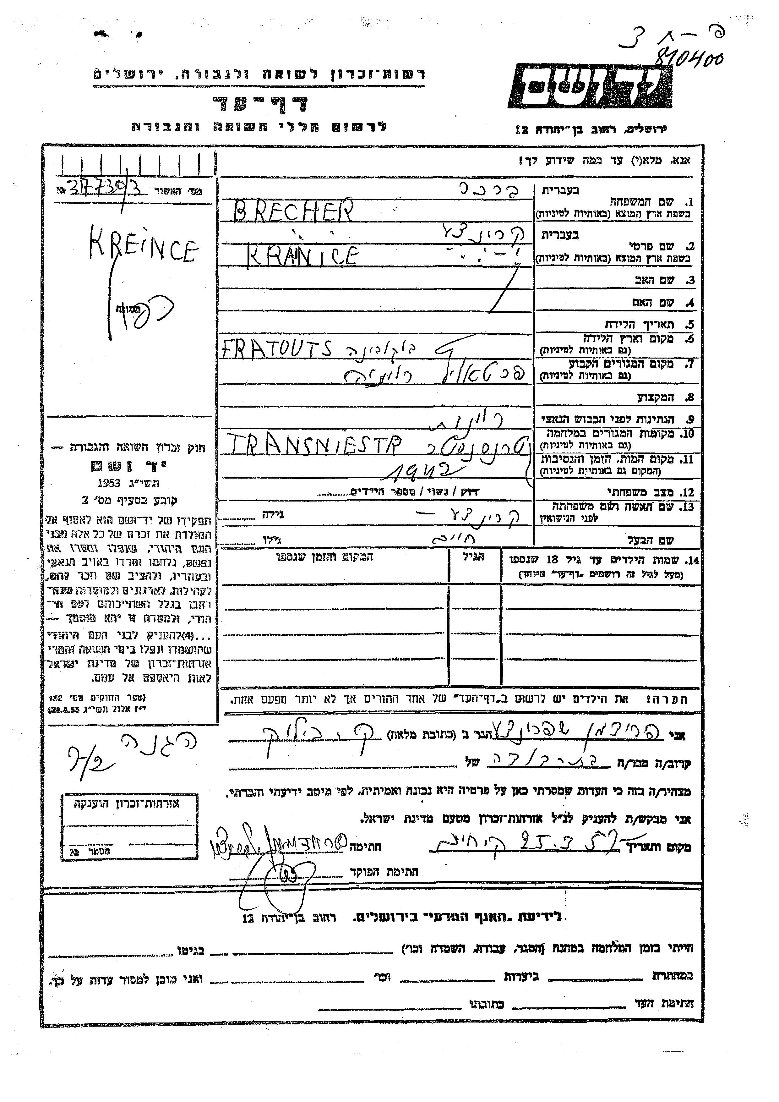 Kraince wurde in der Schoah ermordet. Todesort: Transnistria, Ukraine (UdSSR) im Jahr 1942.