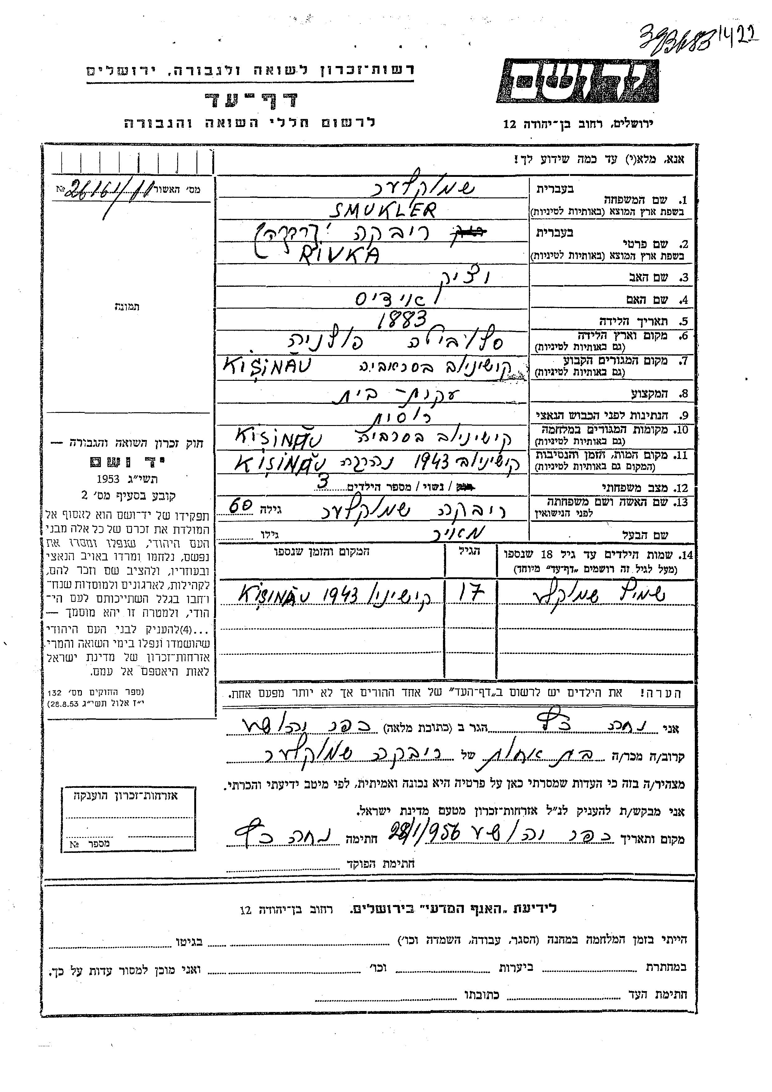 Suche nach einem Todesjahr im Zeitraum der Holocaust: 1933 bis 1945. Bitte wählen Sie 'Exakt' im Auswahlmenü, um nur nach einem einzelnen Jahr zu suchen, alternativ können Sie die flexibleren Optionen '+/- 2 Jahre' oder '+/- 5 Jahre' wählen.