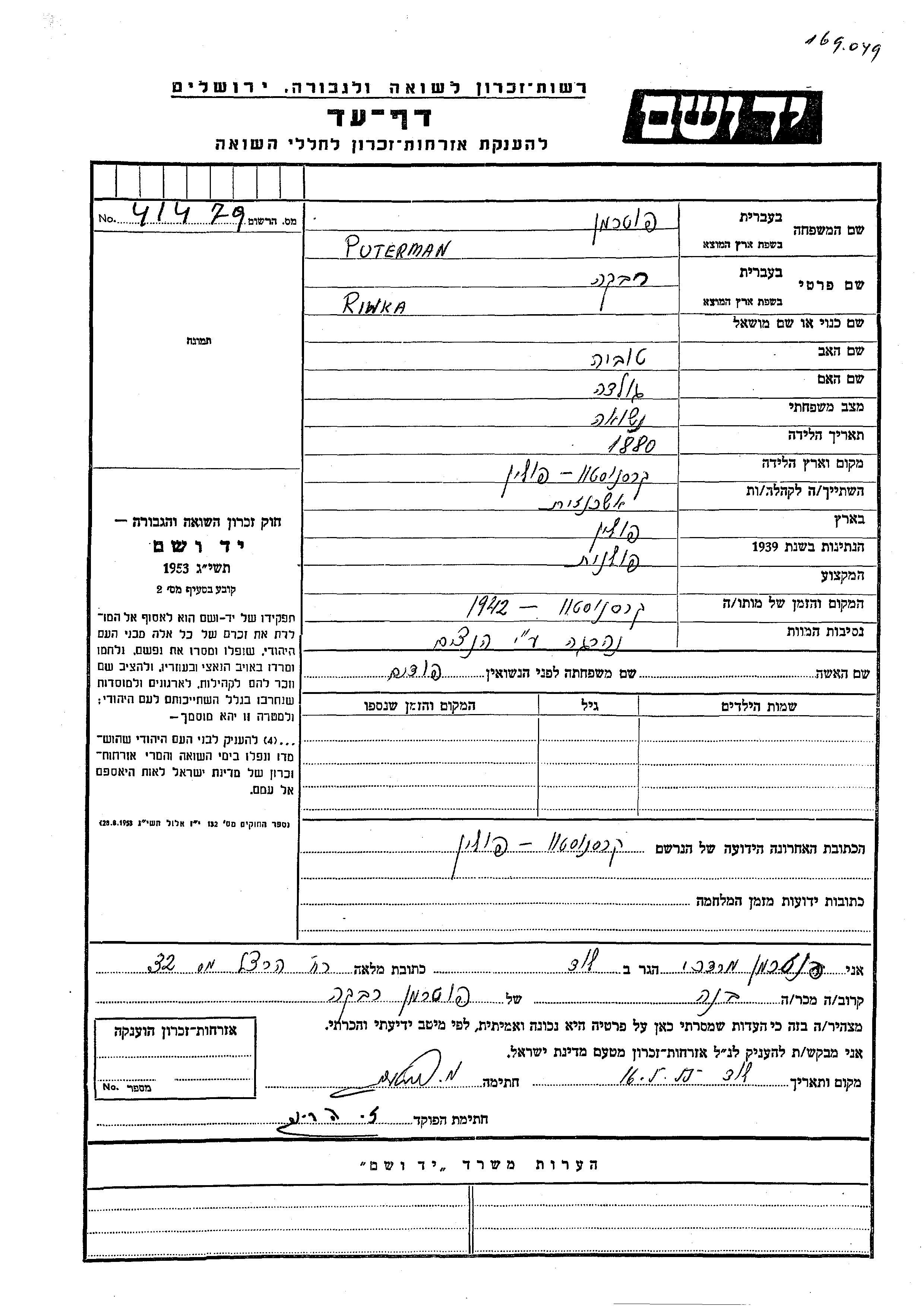 Riwka wurde in der Schoah ermordet. Todesort: Krasnystaw, Polen im Jahr 1942.